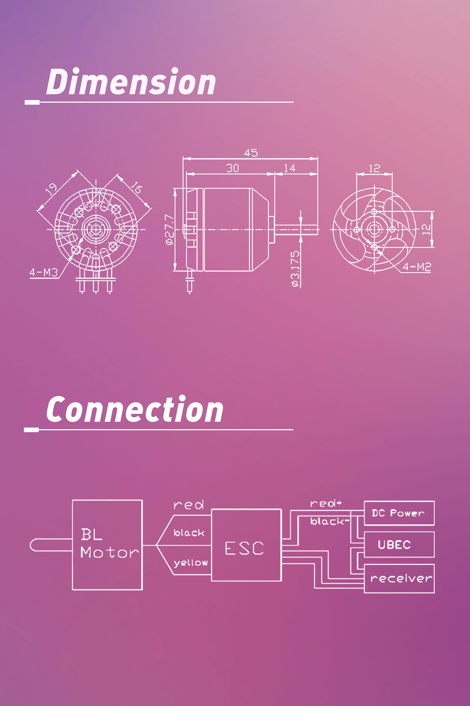 Specification: Battery: 2-4S Lipo Motor Weight: 52g Motor Size: 28*30mm Shaft Size: 3.17*45mm Motor Mount: 16*19mm(M3*4) D2830-1300KV Motor Max pull: 930g Volts: DC7.4~15.0OV Suggested ESC: 30A~40A Maximum Power: 275W Suggested Prop: 7~9 inch prop D2830-1000KV Motor Max pull: 890g Volts: DC7.4~15.00V Suggested ESC: 30A~40A Maximum Power: 210W Suggested Prop: 8~10 inch prop D2830-850KV Motor Max pull: 875g Volts: DC7.4~15.00V Suggested ESC: 30A~40A Maximum Power: 187W Suggested Prop: 8~11 inch prop