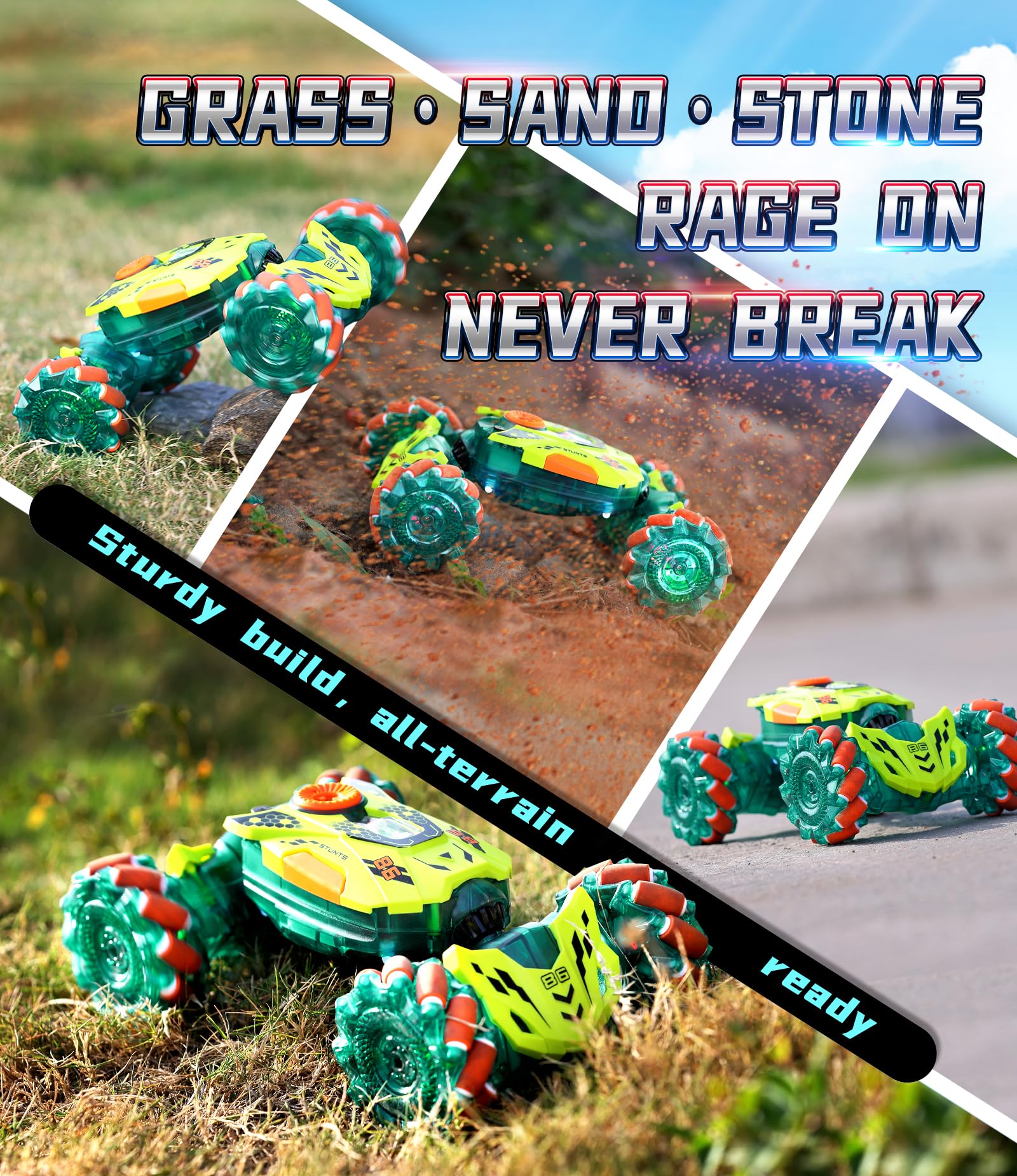 All-Around Drift Action: This Rc Stunt Car Offers 4Wd Power For Awesome Drifts, Sideways Moves, And 360
