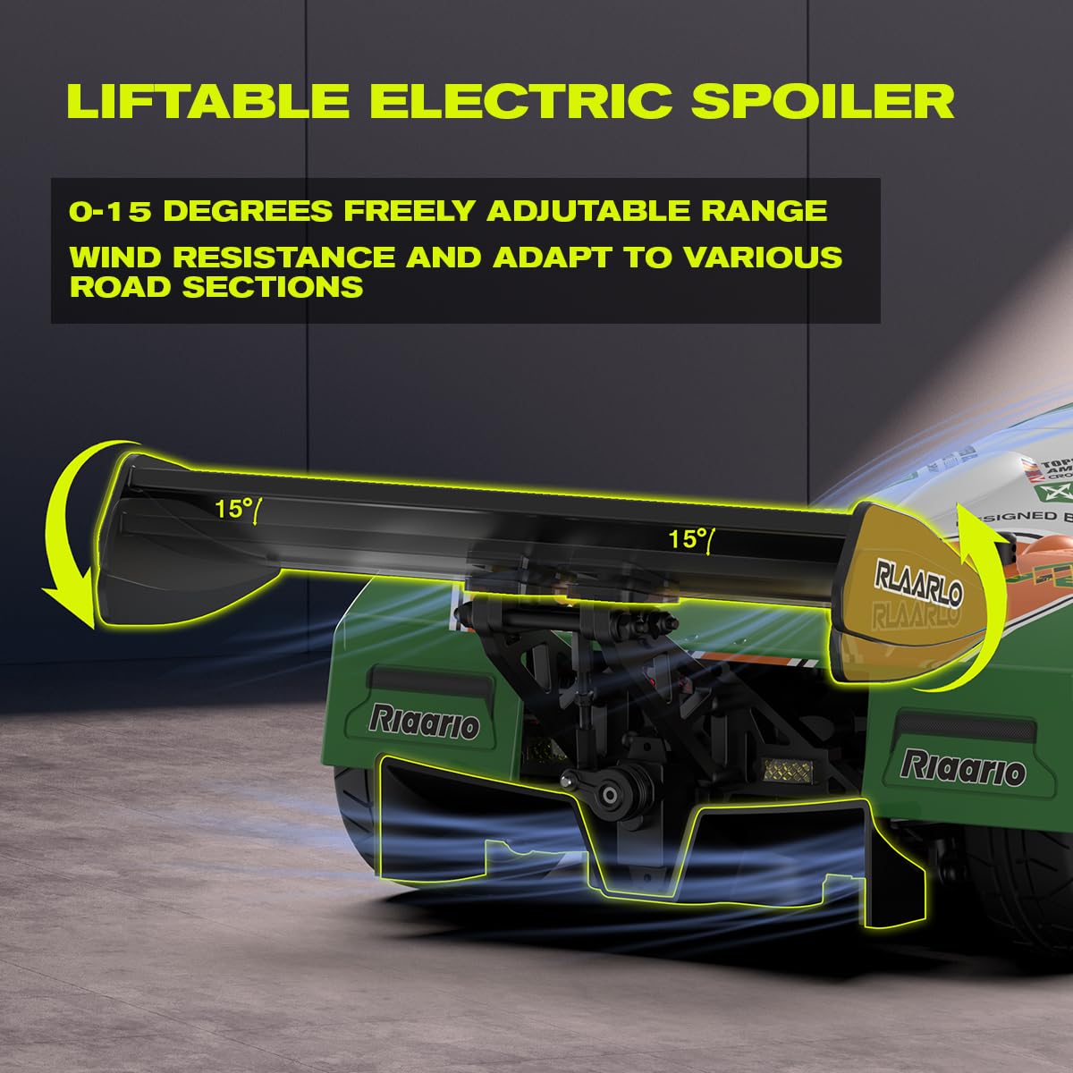 Electric Spoiler Lift: Ak-787 Is Equipped With An Electrically Operated Liftable Tail Fin, Which Can Be Freely Adjusted Within A Range Of 15 Degrees To Meet The Wind Resistance Requirements Of Different Road Sections And Improve Performance | Vintage Tires (Spoiler): Ak-787 Features A Classic Tire Shape With Simulated Hubcaps And A Rear Diffuser, Which Not Only Enhances The Exterior Appeal, But Also Optimizes The Underbody Airflow, Creating Excellent Aerodynamic Performance For A Smoother High-Speed Ride And A Great Driving Experience For Extreme Speed Enthusiasts | Signature Easy-Access Modular Design: Ak-787 Introduces An Antenna Organizer To The Internal Structure, Making The Whole Thing Fresher And Neater. This Improvement Reduces Interference With The Receiver, Thus Enhancing Performance. Routine Maintenance Is Quick And Easy | Carbon Fiber Chassis And Upper Deck : Features With Its Light Weight, Sturdy And Flat Design Has More Space For Modifications, Providing A More Diverse Range Of Modification Styles. Triangular Carbon Fiber Support Deck Enhances The Durability And Stability Of The Whole Vehicle, Lightweight But Stiff Enough | Suspended Independent Gearbox: The New-Designed Suspended Independent Gearbox Increases The Anti-Impact Strength; 1/8 Differential With Corresponding 1/8 Gearbox Used On This 1/10 Car Ensures The Transmission Safely And Efficiently | Split Structure Steel Center Driveshaft: Split Structure Center Driveshaft Is Composed Of 2 Separated Steel Driveshafts Connected By An Aluminum Support, Which Can Avoid Deformation Of Driveshaft During High Speed Rotating | 3300Mah Lipo Battery Hardcase: Features A 35C Continuous Discharge Rating For High Performance And Longevity. Max Burst Rate: 50C. Hardcase Can Prevent The Battery From Impacting, Protect The Battery Safetly.With A Unique Adjustable Battery Space For Different Battery Sizes, Eaily Remove And Install The Battery
