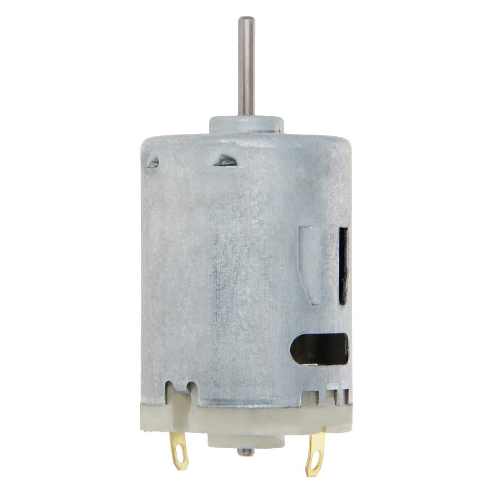 Fielect DC Motor Round ShaftSpecifications:Brand:FielectVoltage:DC12VSpeed:7000RPMCurrent:0.15AProduct model:R385Shaft type:round shaftMaterial:copper aluminum alloyColor:silver toneProduct description:1.A DC motor is a motor powered by direct current. It has good starting performance and can economically achieve a wide range of smooth speed regulation.2.DC motors are widely used to maintain torque in machinery with high starting and speed regulation requirements.3.Motor Round Shaft has strong versatility, is easy to maintain, and has low maintenance cost. Only a few internal transmission parts are needed to ensure the maintenance of the normal production of the whole line.Package Content:5Pcs x DC MotorNote:1.The size of the product are manually measured, please allow slight errors, thank you for your understanding.2.The actual product and the color of the item shown in the picture may be slightly different from the actual product, please refer to the actual product.3.Please pay attention to the size of the item before you purchase it.