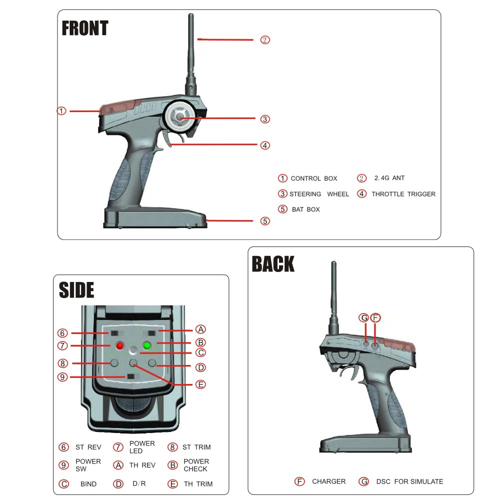 This product is specially developed for the radio control models, it offers super active and passive anti-jamming capabilities, very low power consumption and high receiving sensitivity. Features: Super active and passive anti-jamming capabilities. Very low power consumption. High receiving sensitivity. Work between 2.400GHz to 2.4835GHz frequencies, divide into 160 frequency points. Use a linear spread of fine paragraph by an excess antenna. It covers the entire band width of the antenna bandwidth range. Has its own unique ID, increase the anti-jamming capability and stability. Specifications: Transmitter: Channels: 2 Channels Model Type: Car/Boat RF Power: Less than 20dbm Modulation: GFSK Code Type: Digital Sensitivity: 1024 Low Voltage Warning: Yes (less than 9v) DSC Port: Yes Charger Port: Yes Power: 12V DC (or 8x AA batteries) Weight: 328g ANT Length: 26mm Size: 159*99*315mm Color: Black + Orange Certificate: CE FCC Receiver: Channels: 3 channels Model Type: Car/Boat Frequency Band: 2.4G Modulation: GFSK Sensitivity:1024 RF.Receiver Sensitivity: -100dbm Power: 4.5-6vdc Weight: 5g ANT Lenth: 26mm Size: 37.6*22.3*13mm Color: Black Certificate: CE FCC Package List: Package Size: 28 * 19.5 * 11.5cm package Weight: 584g Package Including: 1 * Transmitter (FS-CT2) 1 * Receiver (FS-GT3C) 1 * Manual