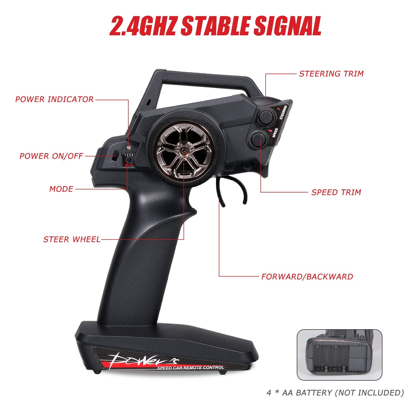 Features 2.4GHz control system, the cool printed shell, and solid all-aluminum alloy chassis offer a flexible and stable driving experience while providing longer service life. This popular car could give you an excellent sense of controlling and a realistic driving experience.Features: High-Speed Performance: Built-in super strong, powerful, and high efficiency strong magnetic motor makes the electric energy converted into power maximally and the running speed is up to 60km/h. 2.4G Remote Control Frequency: 2.4GHz Radio System with anti-jamming capability allows us to race at the same time on the same track. The control distance is up to 100 meters. Tough Parts: The base is made of high-strength aluminum alloy with strong stability. Zinc alloy gear, with strong wear resistance. Aluminum alloy shock tower to achieve strong stability and long service life. Conquer Various Terrains: Adopt hardware hydraulic shock absorber, shock absorber performance can adapt to multi-clock terrain. The racing car can provide strong power torque significantly make the car easy to complete difficult moves. It is easy to adapt to rough terrains such as beach, snow, grass, mountain road, and rock road.Specifications: Item name: RC racing car Scale: 1/12 Main material: Aluminum alloy, plastic Maximum speed: 60km/h Frequency: 2.4G Battery: 7.4V 2200mah Motor: 550 brushed motor Charging time: 3H Working time: 9min Remote control distance: 100 meters Remote controller battery: 4*AA battery(not included) Size: 35*20.5*11.5cmPackage Information: Package size: 45.5*22.5*14.5cm Package weight: 1929g Gift Box PackagePacking List: 1* RC car 1* Remote controller 1* Battery 1* Charging cable 1* Cross socket wrench 1* User manual
