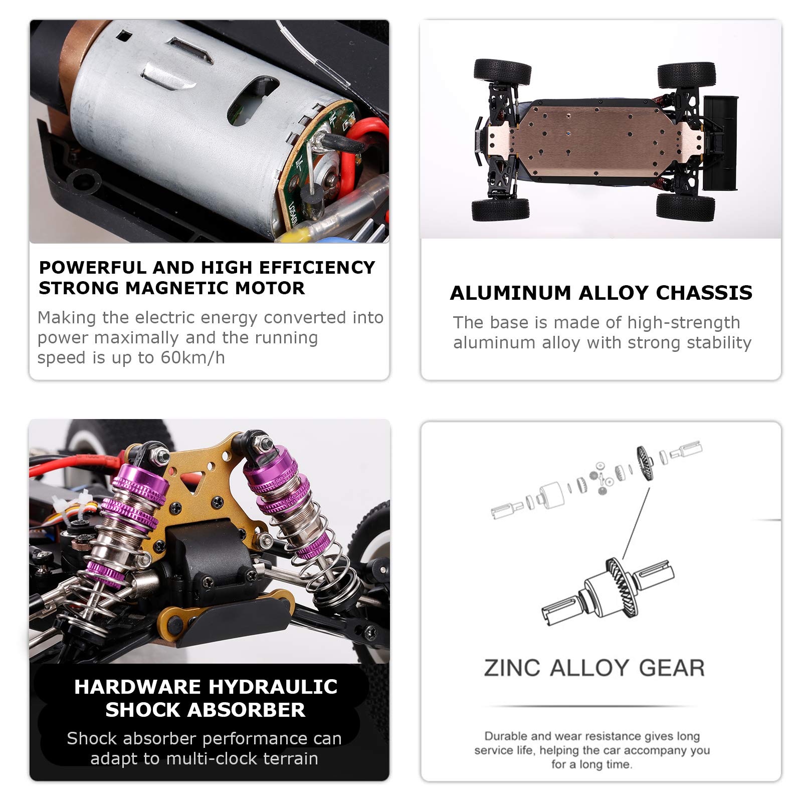 View compareGoolRC WLtoys 124019 RC Car, 1/12 Scale 2.4GHz 4WD 60km/h High Speed Racing Buggy Drift Car RTR, Aluminum Alloy Chassis, Zinc Al