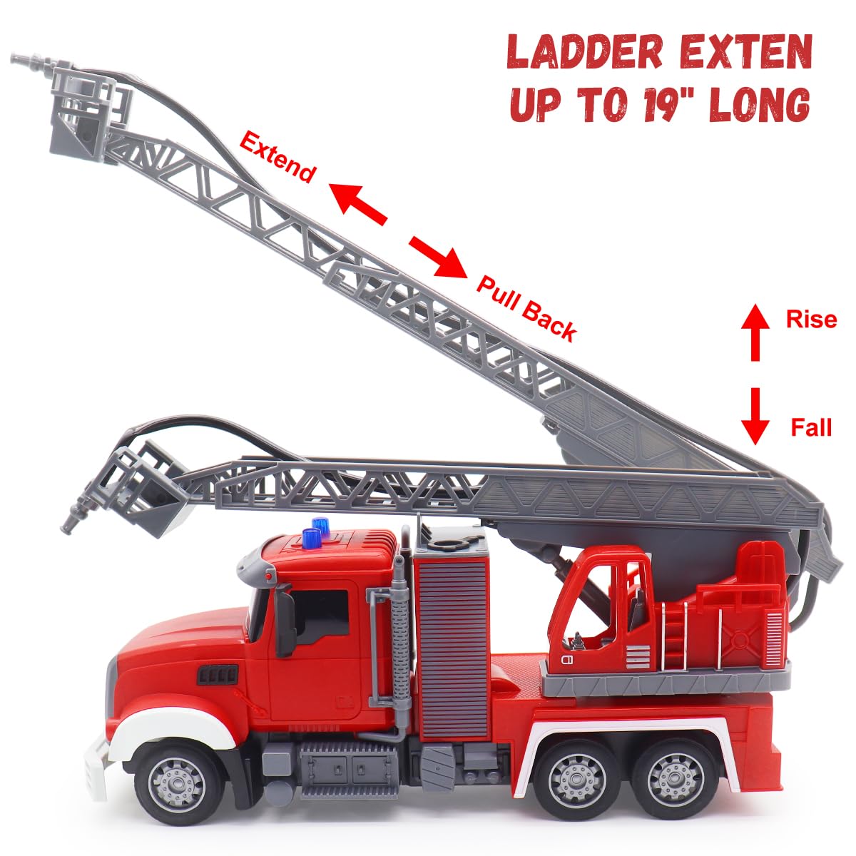 QuirkyGlee 9 CH Remote Control Fire Truck, Rc Fire Truck Toy, Fire Truck with Lights Working Water Pump and Rotating Rescue Ladd