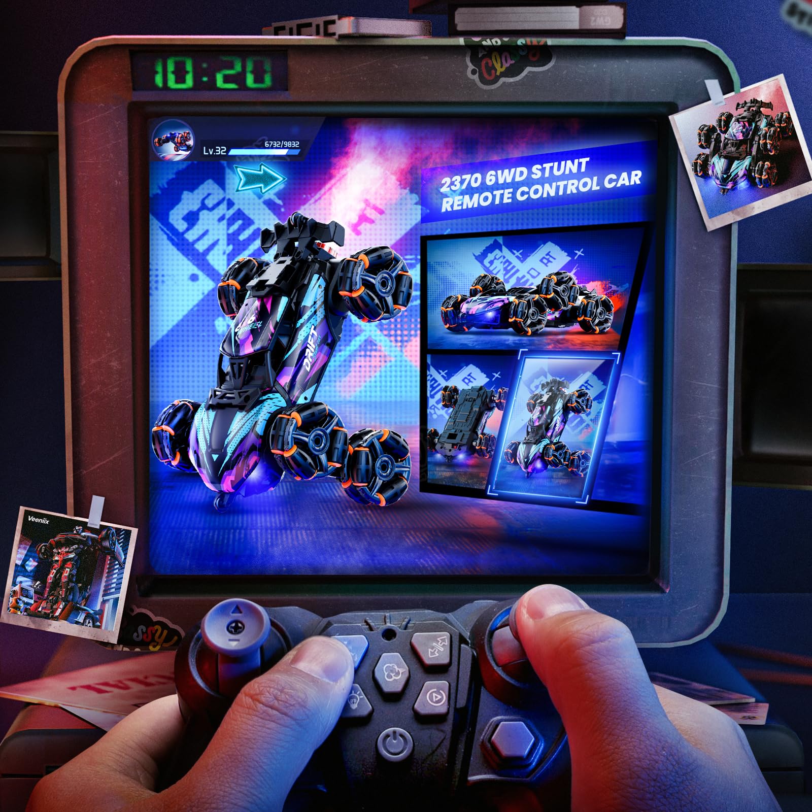 Veeniix 2370 6Wd Remote Control Car,Racing Drift Rc Stunt Car,Double-Sided Driving And 360Rotating Rolling,With Spray And Light Effects,Rc Cars Toys For Ages 6-13,The Ideal Gift For Boys And Girls