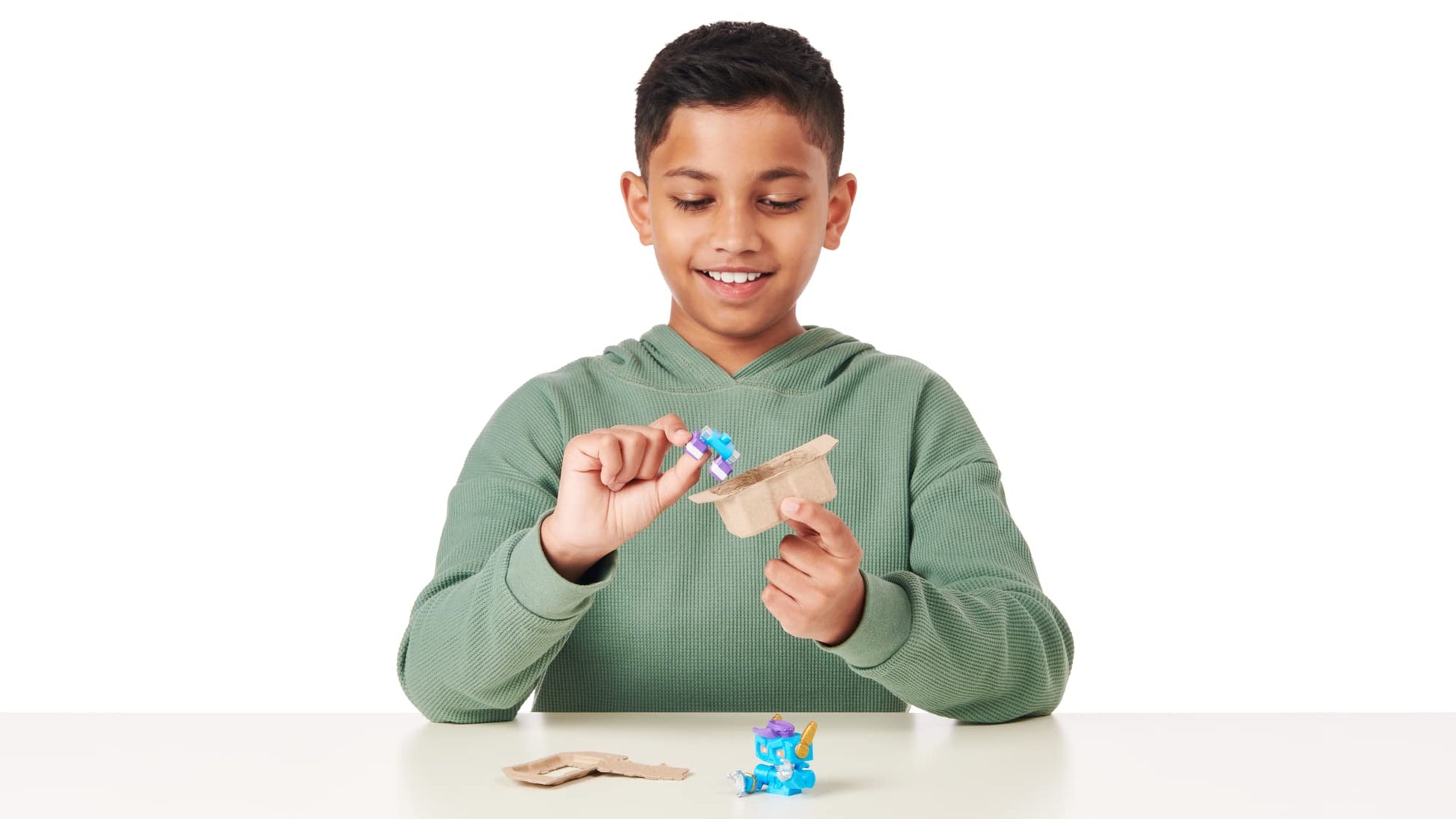 Discover the new Treasure X Robots Gold collection and look for a gold plated treasure! Go through 8 adventure levels. Open the packaging, inside you will find a bag and a box and a tool to open. Open the bag. In the middle you will find a part of the mini robot covered with rust. Put it in a glass of water. See how the grate is washed out. Open the box now. Inside you will find the remaining mini robot elements and the core. Combine all the pieces to build your mini robot. There are 16 different mini robot figures to collect. What mini robot do you have? Have you found a gold plated core? There are 5 cores to collect. Mini robot elements can be mixed together to create brand new mini robots. Collection supported by TV and online advertising.
