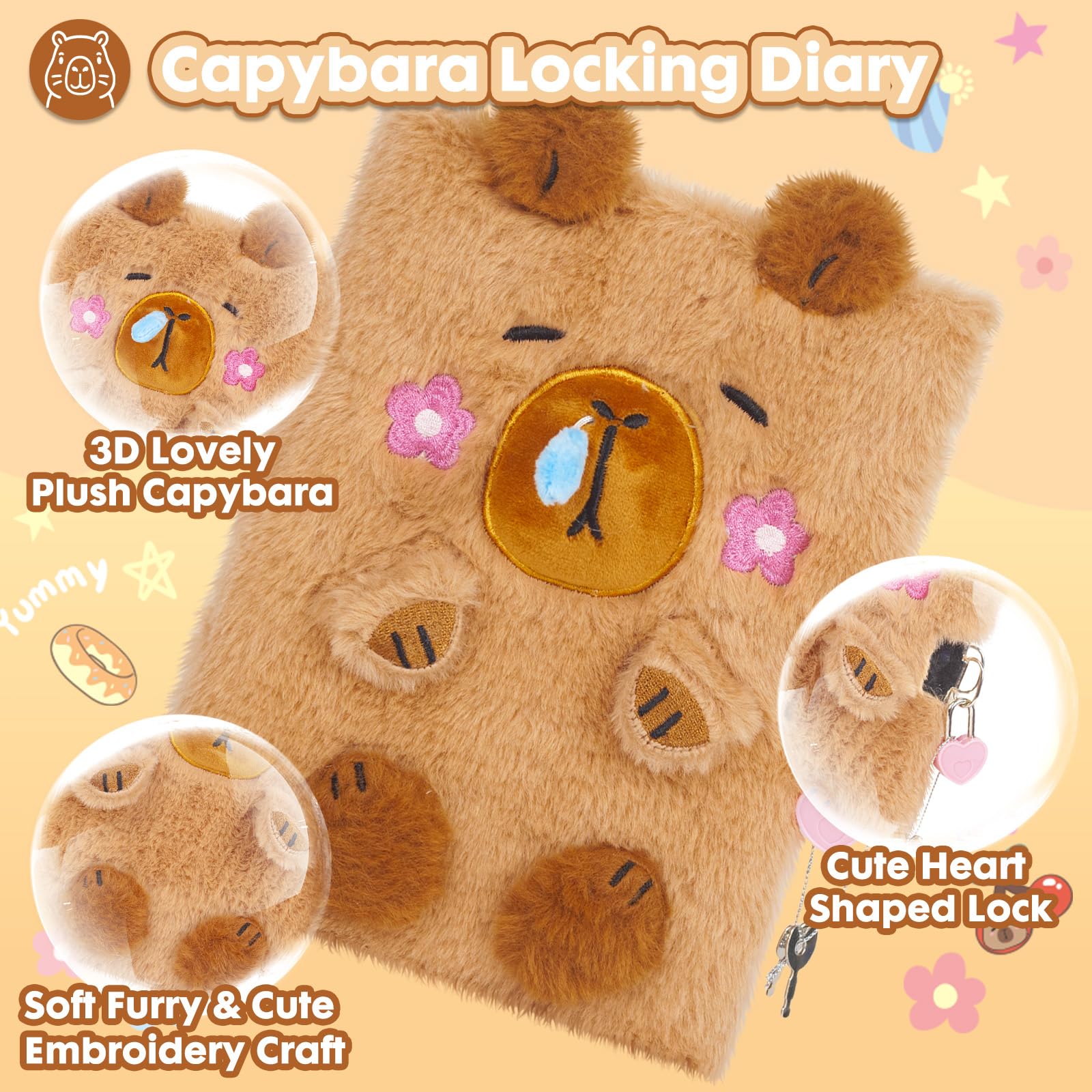 Capybara Diary for Girls with Lock Plush Capybara Toys Gift for Teen Girls Back to School Kids Writing Journal Notebook Birthday Gifts for Little Girls Ages 5 6 7 8 9 10-12 Year Old