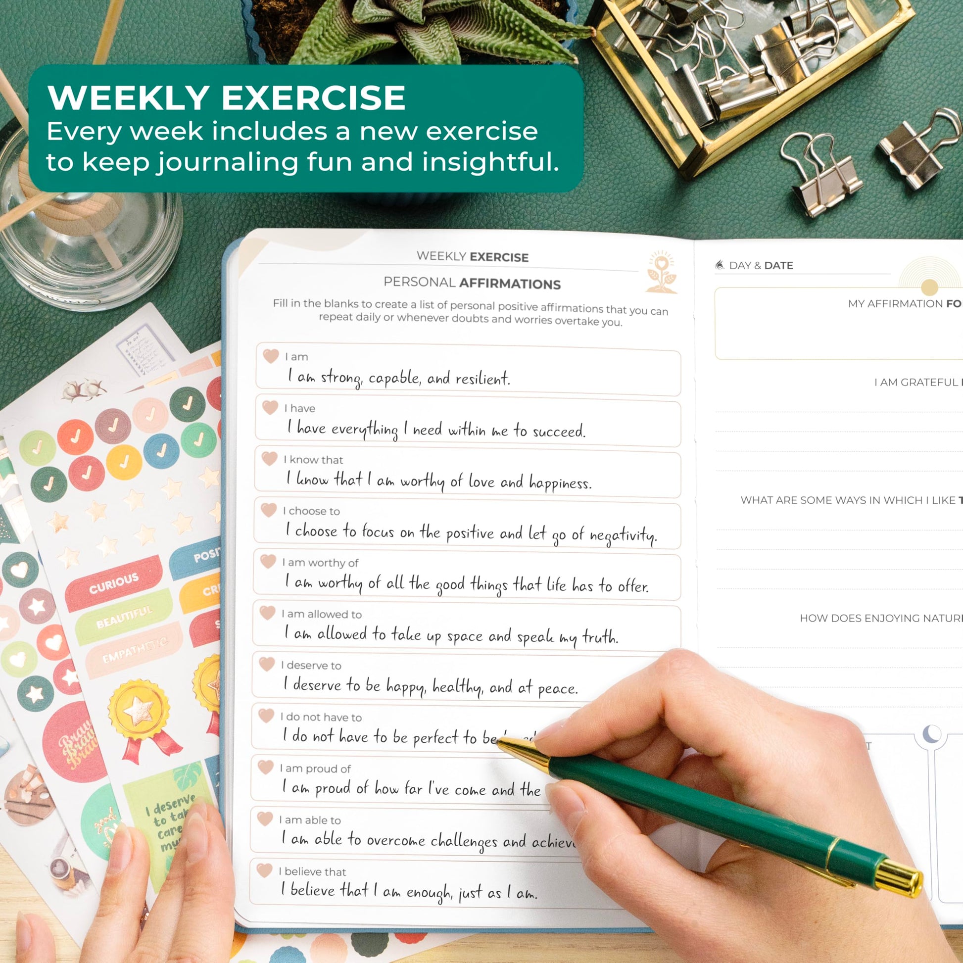Clever Fox Gratitude Journal Premium - Happiness, Positivity & Affirmation Journal - Inspirational Daily Notebook, 6 Months (Aqu