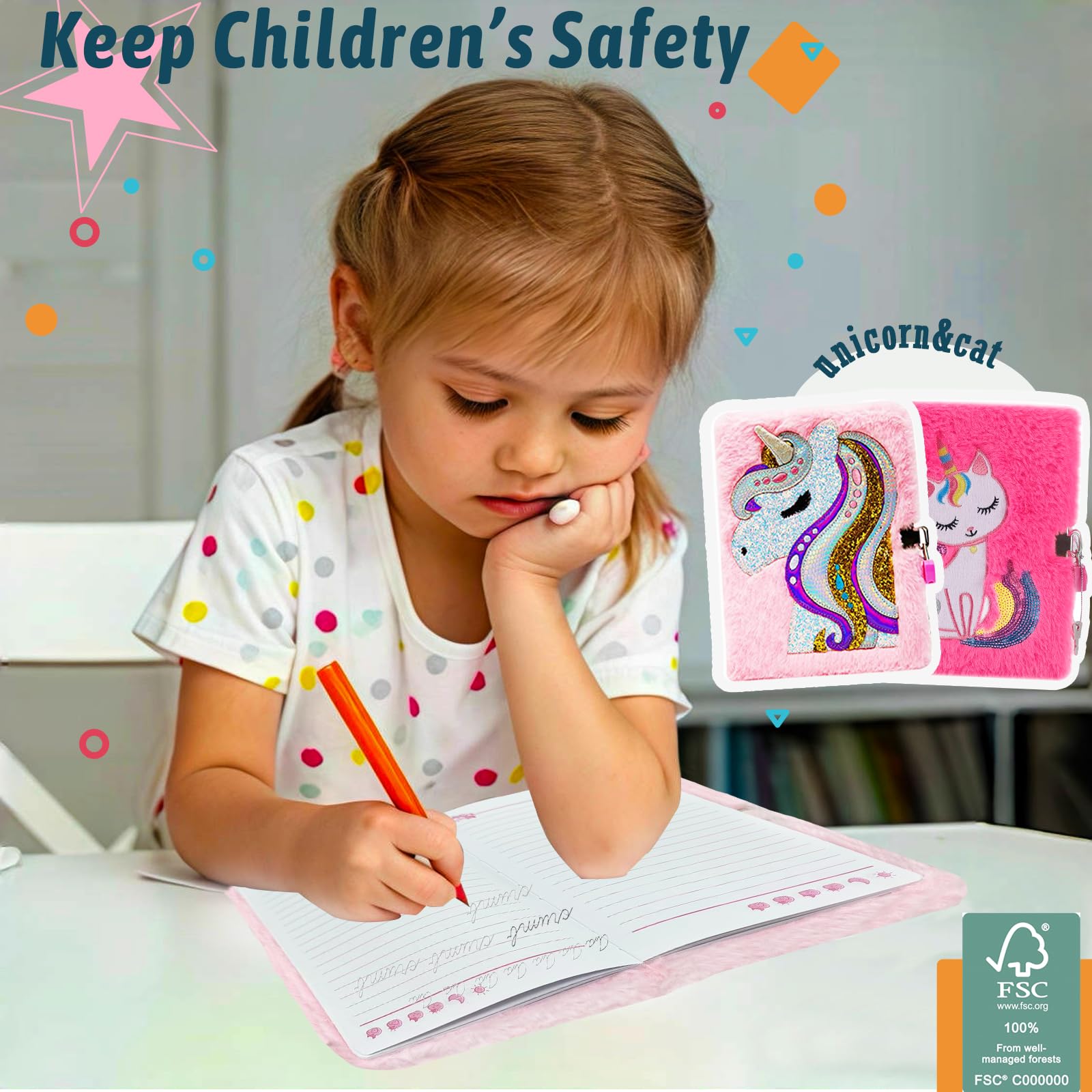 Dicvute 2Pcs Diary With Lock, Gift For 6 7 8 Years Old Girls, Fuzzy Notebook Cute Unicorn Cat Diary Secret Writing Plush Journal