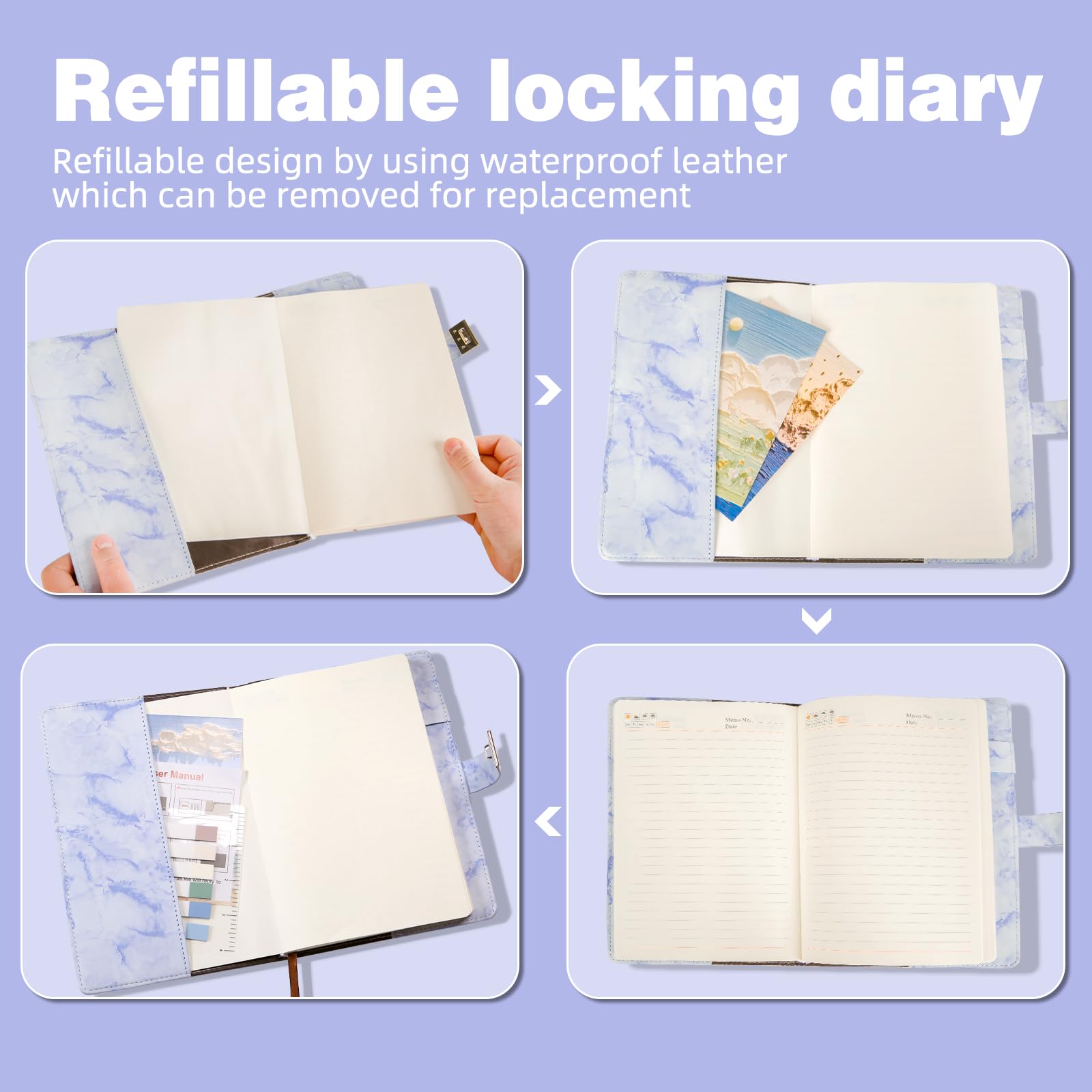 Kutoda Marble Diary With Lock, 2 Pack 192 Pages College Ruled Secret Journal With Lock, Waterproof Diary With Lock, A5 Journal W