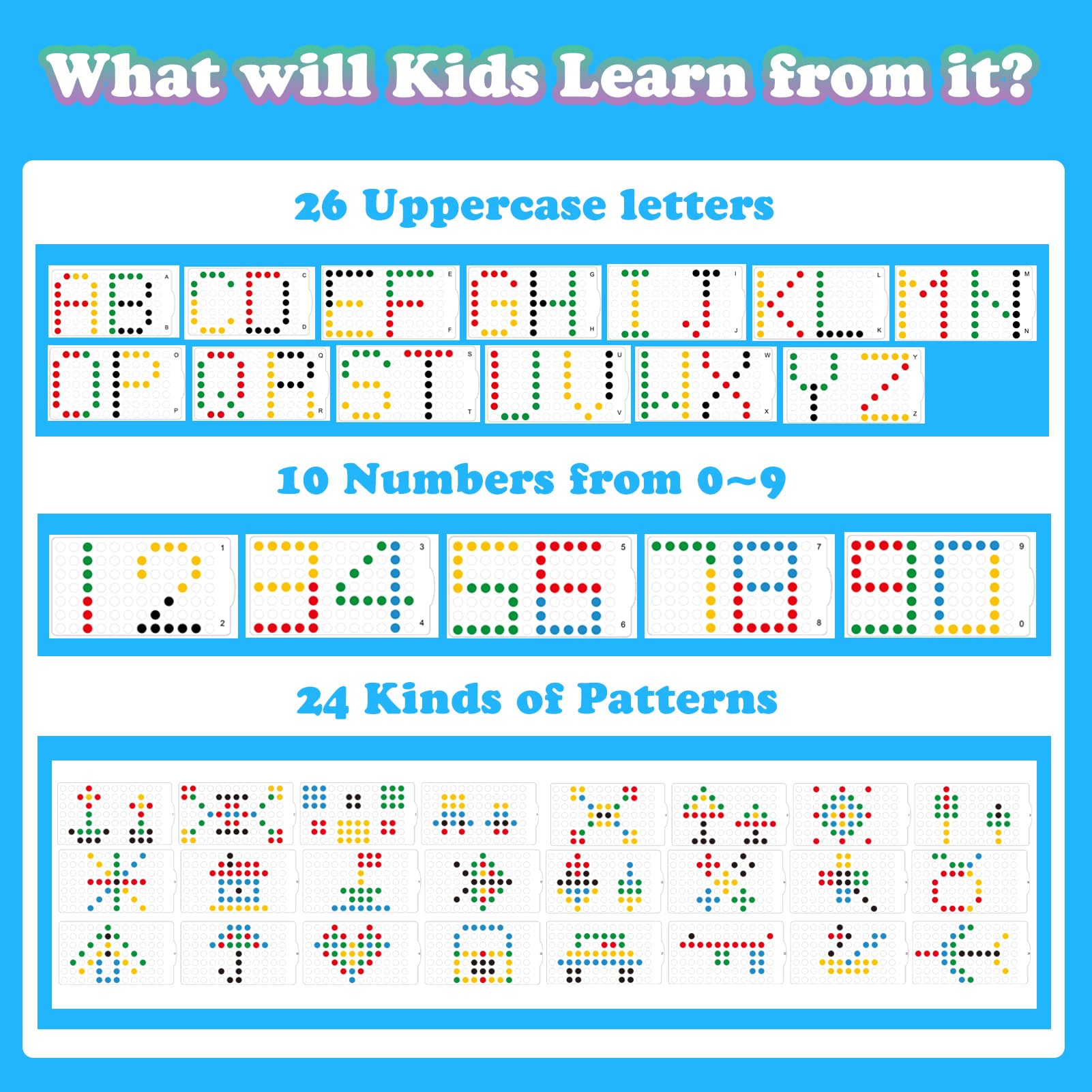 - Q: How can this set help my child with learning? A: This set promotes learning through play by helping children develop fine motor skills, hand-eye coordination, and cognitive abilities while learning the alphabet and numbers in a fun way.