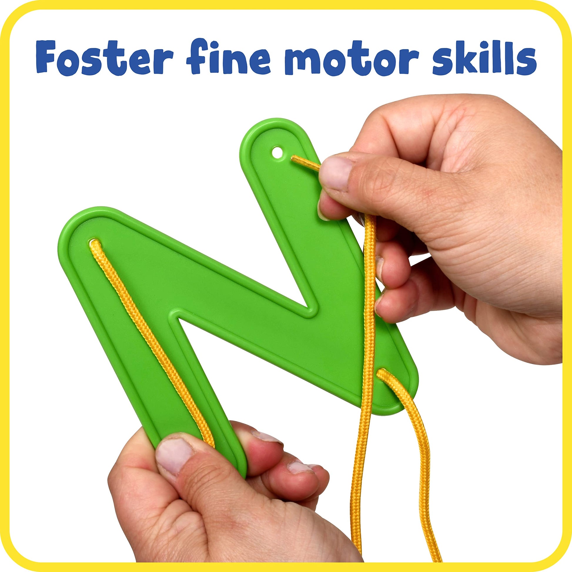 - Q: Are the laces durable and easy for small hands to use? A: Yes, the laces are made from a stretchy, cord-like material with plastic tips that prevent fraying, making them durable and easy for small hands to thread through the holes in the letters.