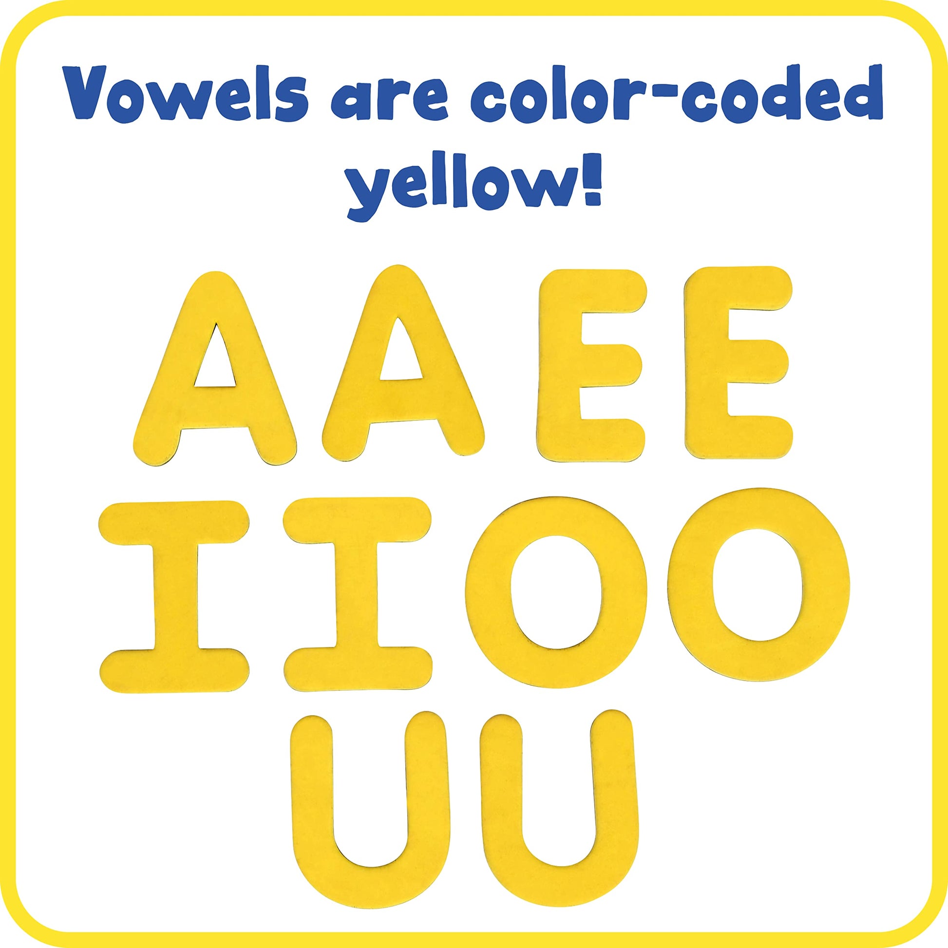 - Q: What colors are the vowels and consonants in this magnetic alphabet set? A: In this magnetic alphabet set, vowels are color-coded in yellow for easy identification, while consonants are available in blue, red, and green.