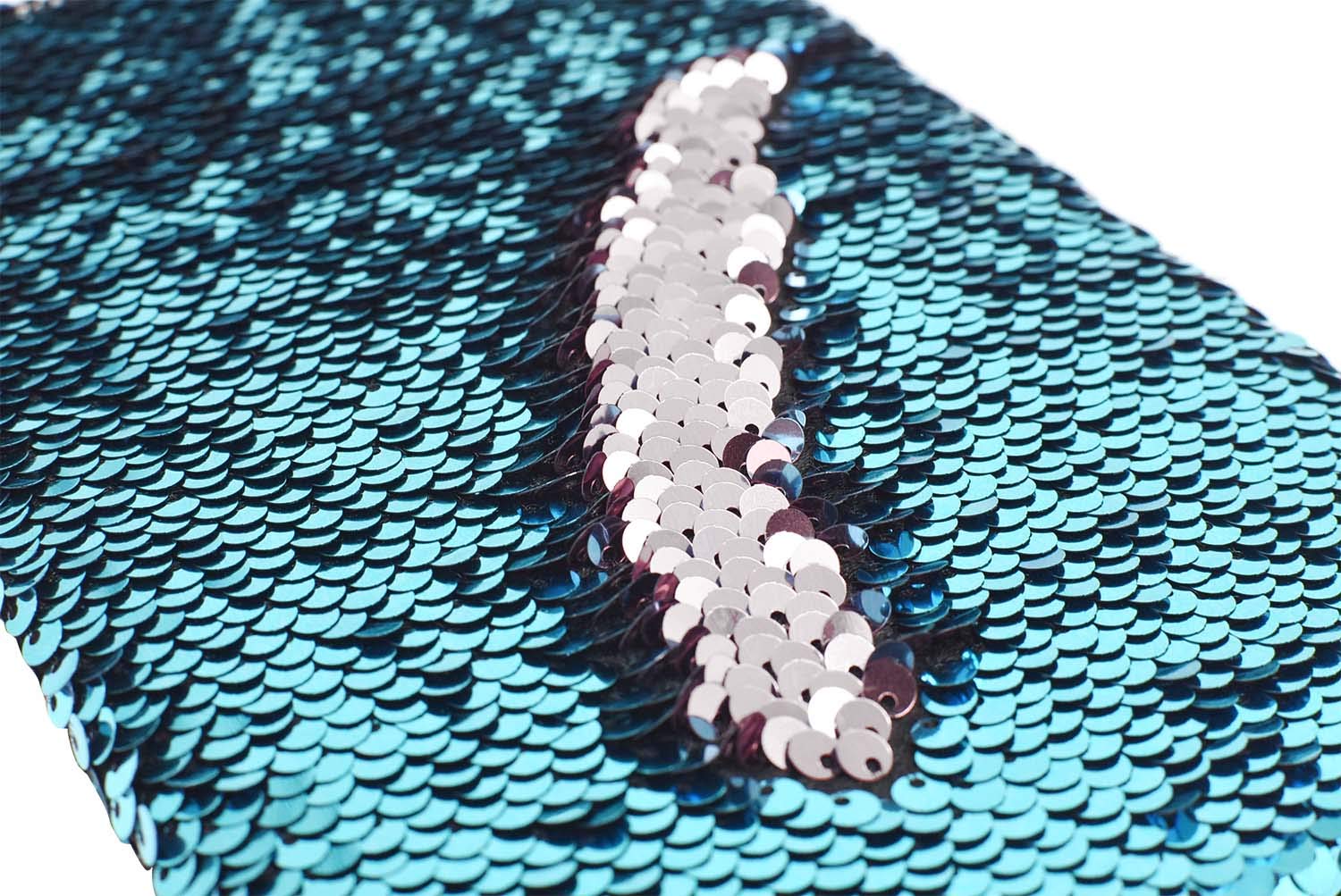 Sequin Girls Journal for Kids 8.5x5.5 Inches 160 Lined Pages Diary for Girls and Boys Reversible Flip Sequence Notebook for Teen Pre School Writing Drawing Travel Gifts (Lake Blue to Sliver)