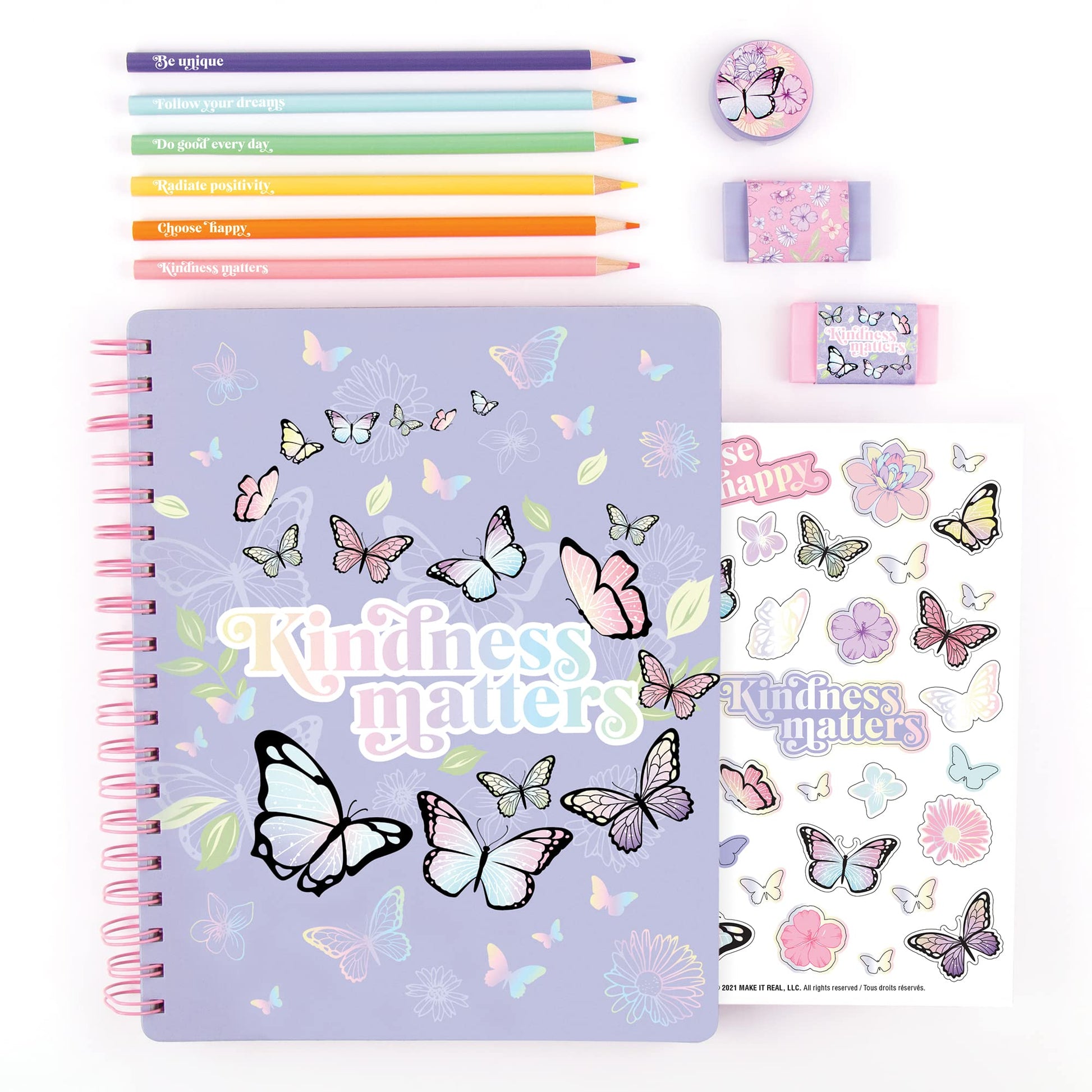 View compareThree Cheers For Girls - Butterfly All-In-1 Sketchbook Set - Girls Diary, Journal, Sketch Book For Kids W/ Pencils, Stickers & More - Drawing Kit For Kids - Unlined Diary For Girls - Kids Sketch Pad