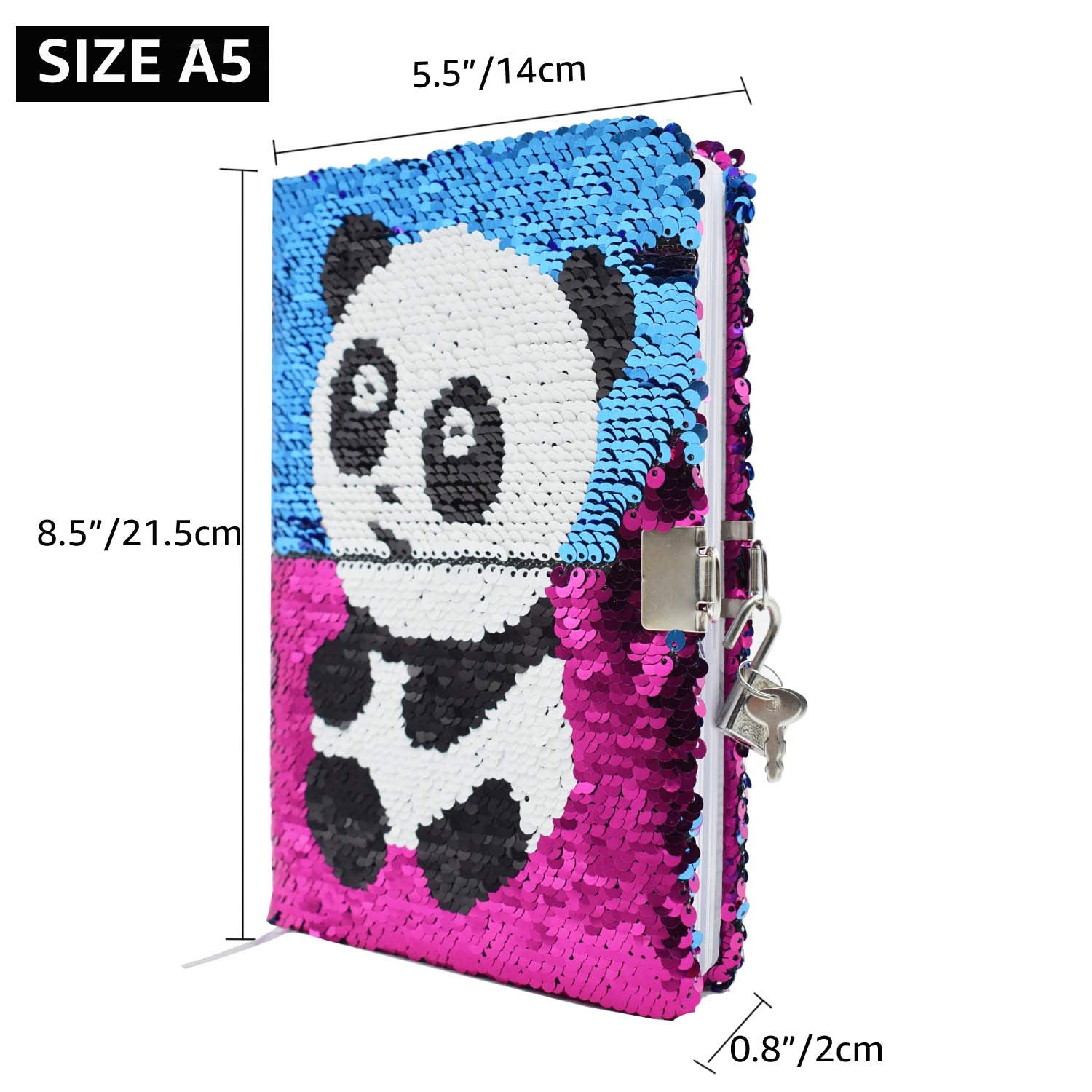 Vipbuy Magic Reversible Sequin Notebook Diary Lined Travel Journal With Lock And Key For Kids Girls, Size A5 (8.5” X 5.5”), 78 Sheets (Panda (Rose Red To Blue))