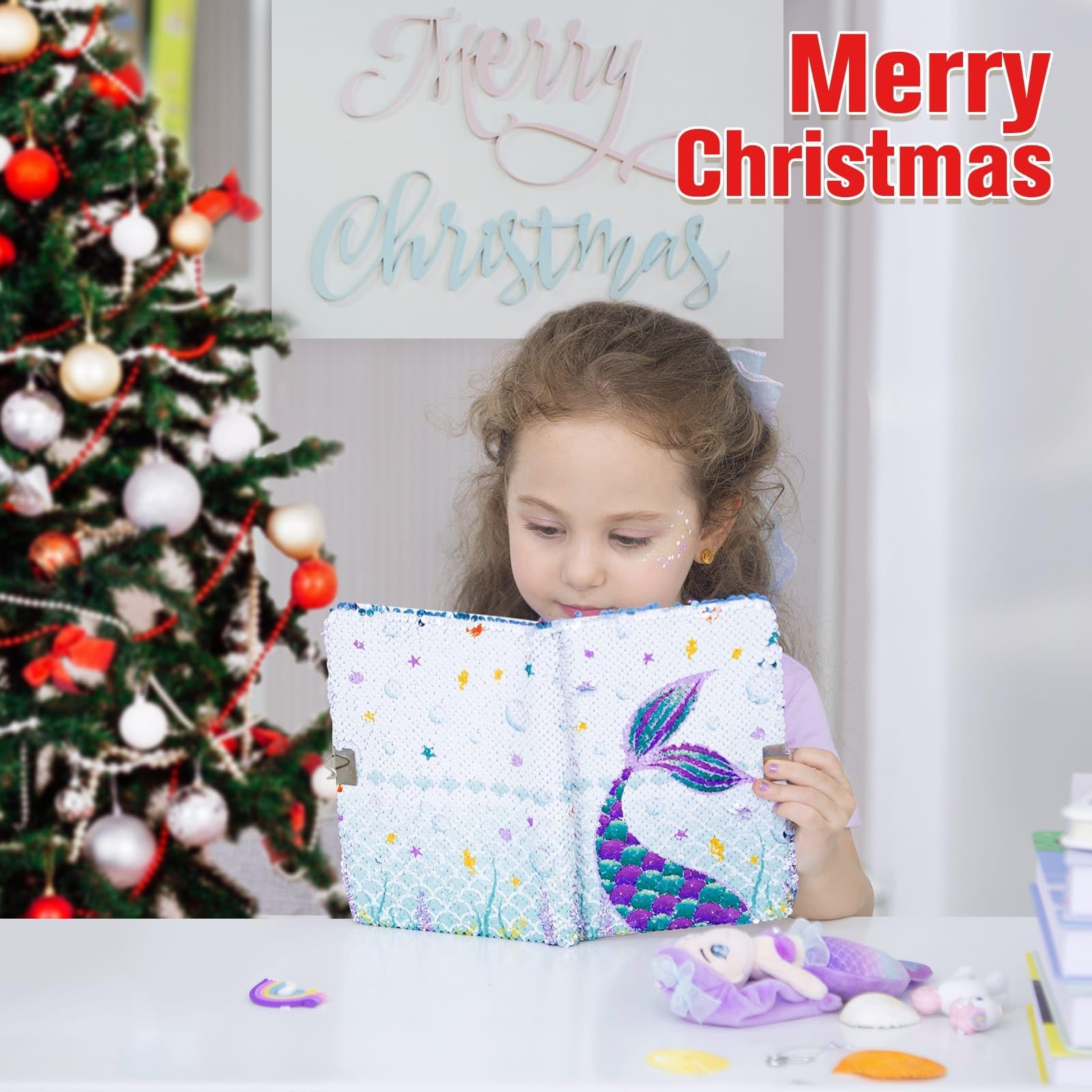 Wernnsai Mermaid Diary For Girls With Lock - Reversible Sequins Kids Journals Unique Mermaid Gift Diary For Girls Ages 6-8, Travel School Office Notebook Notepad A5 Diary