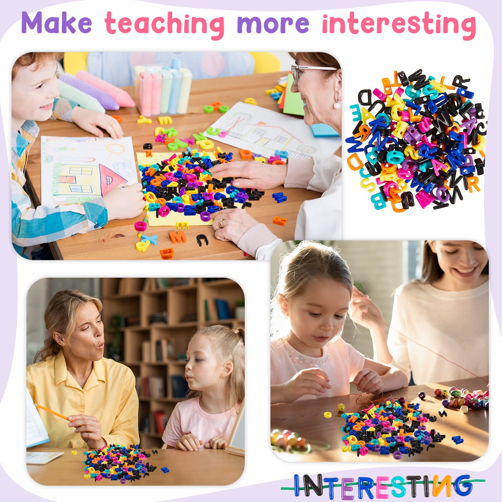 Features: The alphabet games will be a smart choice for parents to interact with their daughters or sons you will be surprised how they can recognize letters colors patterns or the process of spelling words. Besides the stringing letters are appropriate for spellings sorting teaching gaming or gift giving bringing more convenience and fun to you. Specifications: Material: PP plasticColor: colorfulSize: as shown in the picturesPackage includes: 384 x Uppercase letters24 x RopesNotes: Manual measurement please allow slight errors on size. The color may exist a slight difference due to different screen displays. Small items mature-themed's supervision is needed when it is played by little guys.
