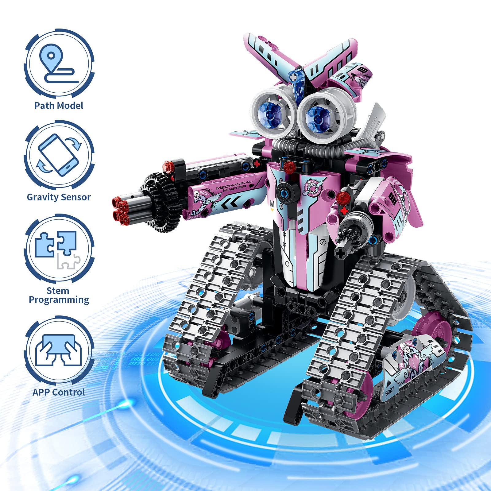 Amy&Benton Girls Remote Control Robot Building Kit Stem Pink Robot Kit With App For 7 8 9 10 11 12 Year Old Girls Birthday Gifts