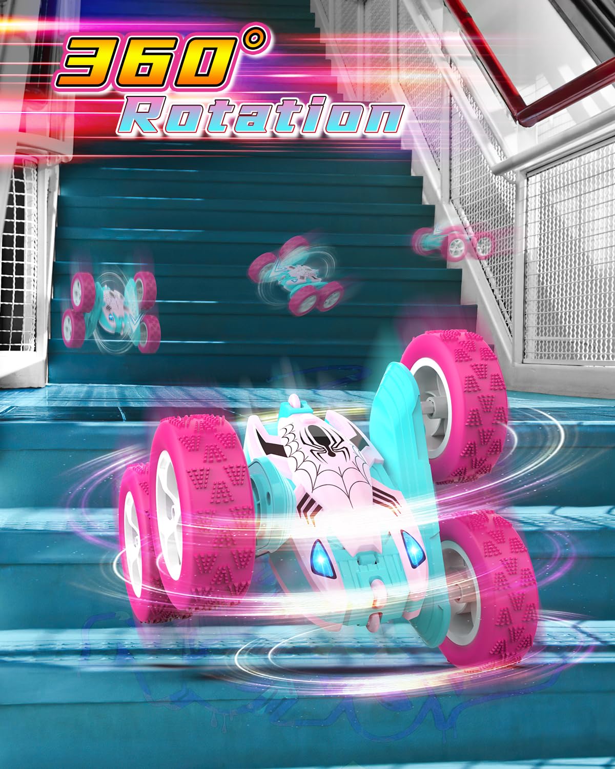Blissbud Pink Spider Remote Control Car for Girls, Kids Race RC Cars for Girl, Princess Toys for Age 6 7 8 9 10 Christmas Birthd