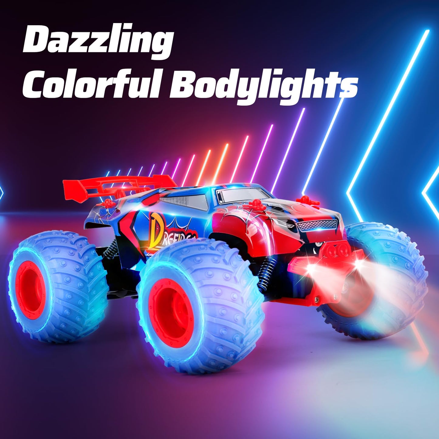 Drefirsa 1:18 Spider Remote Control Car For Boys Age 6-12, 20Mph All Terrian Remote Control Monster Truck With Colorful Bodyligh