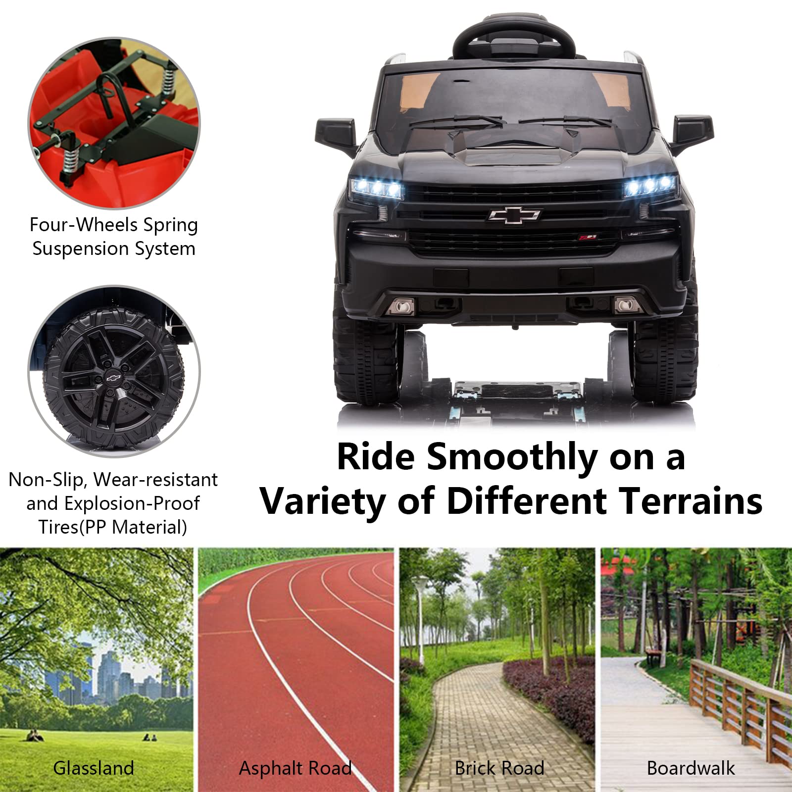 Enyopro 12V Licensed Chevrolet Silverado Ride On Truck Car, Kids Boys And Girls Electric Car Battery Powered Electric Vehicle With Parent Remote Control, Music Player, Led Lights, 3 Speeds, Black