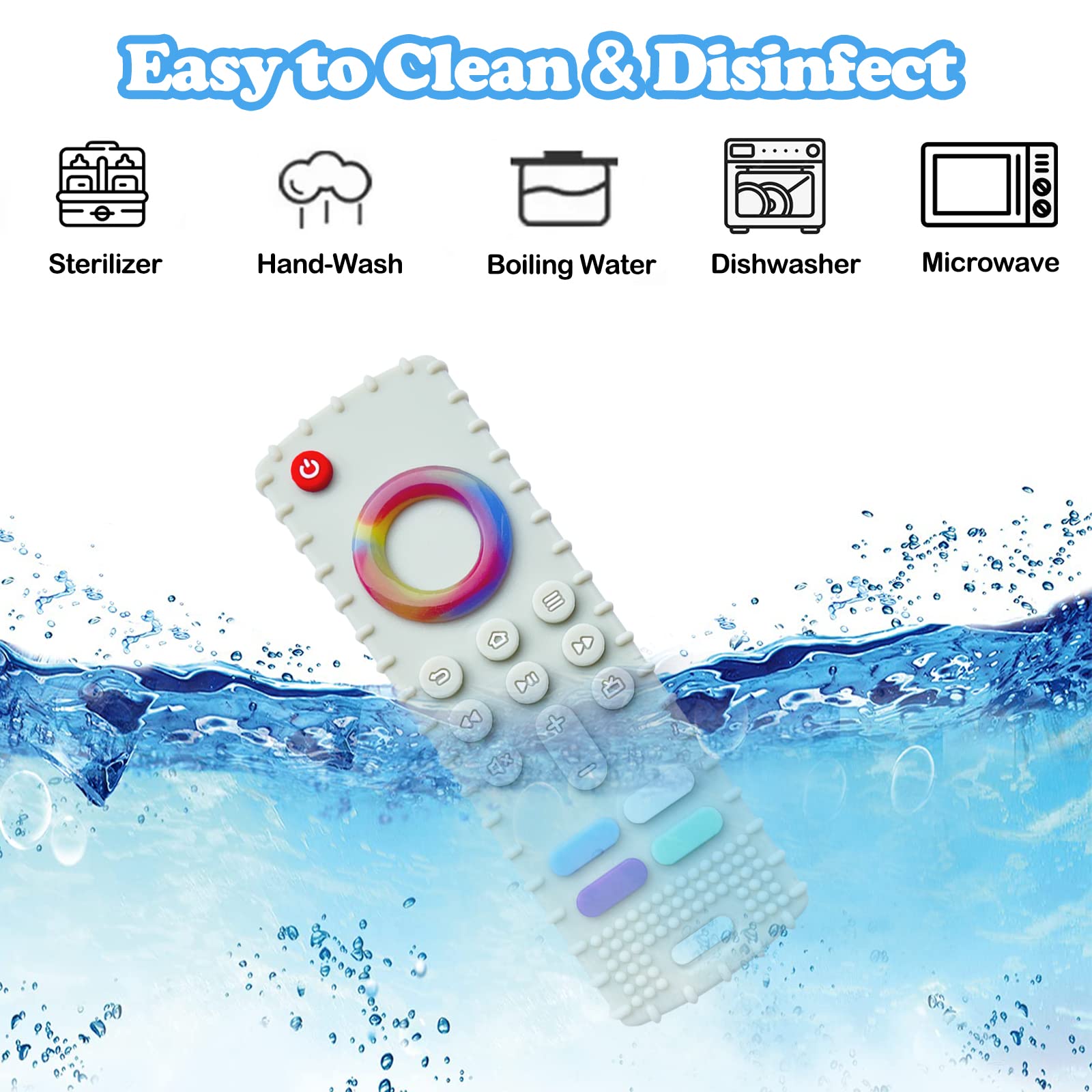 Safe: no BPA, no PVC, no lead, no latex, no phthalates, safe food grade silicone teethers. NOTE: Please sterilize with boiling water or steam for 3-5minutes before first use.