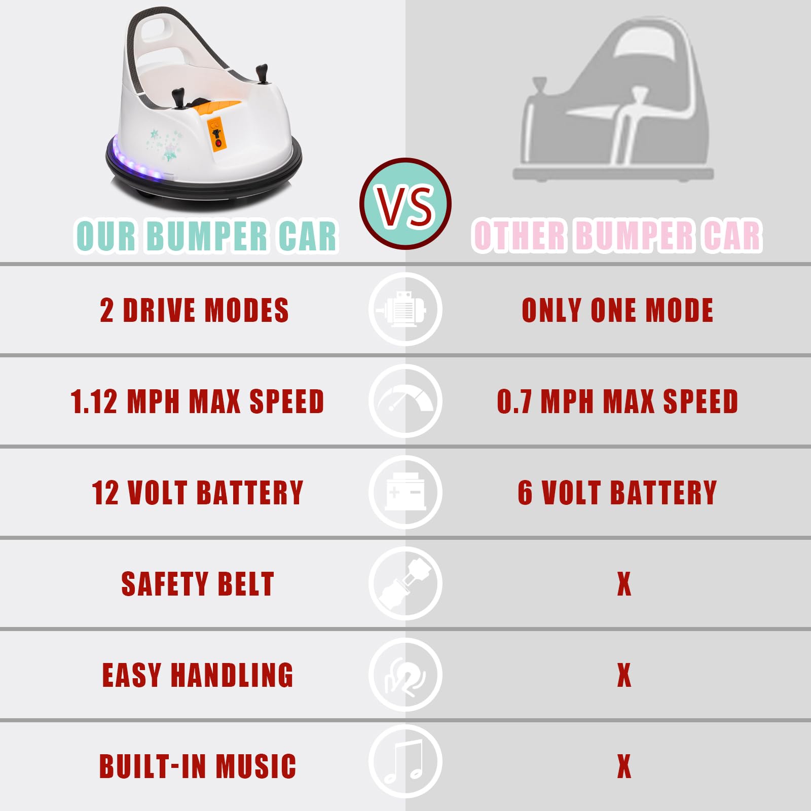 View compareFINITO 12V Ride On Electric Bumper Car for Toddlers with Remote Control, 360 Degree Spin, LED Lights, Music, Safety Belt for Age