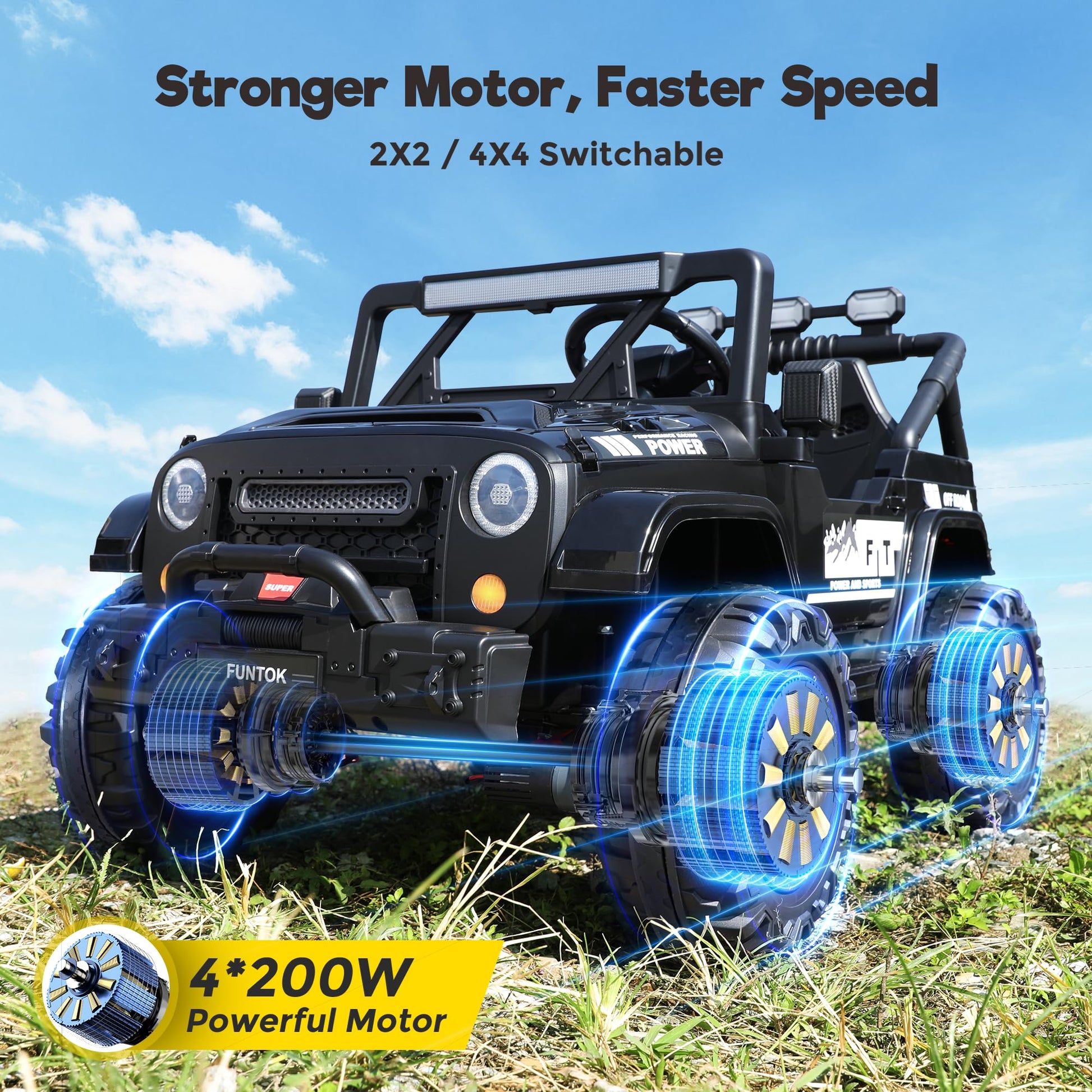 View compareFuntok 24V Ride On Truck For Big Kids, 2 Seater Electric Car W/Remote Control, 4Wd/2Wd Switchable, 4X200W Motor, Truck Bed Stora