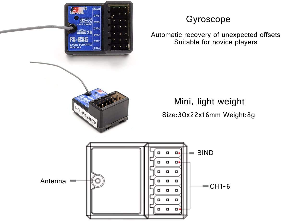 Flysky Fly Sky RC FS-BS6 Receiver 6 Channels for Flysky FS-GT5 Rc Car Remote Controller Radio Transmitter with Gyro Stabilization System - HOBBYMATE