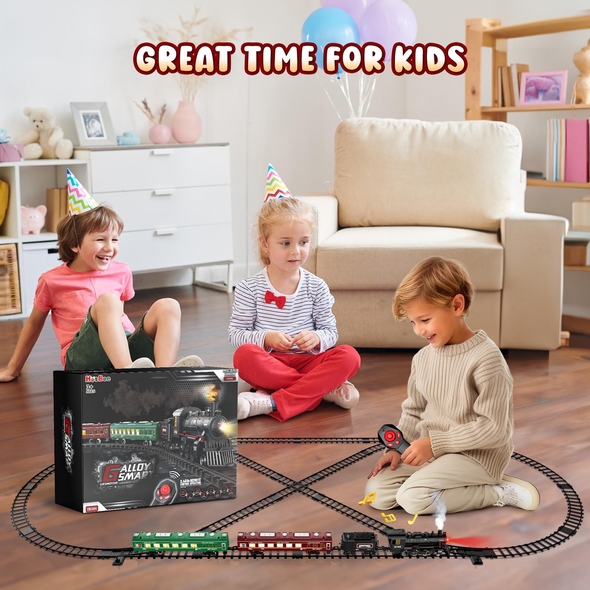 Model Train Set For Boys - Metal Remote Control Train Toys With Steam Locomotive,Passenger Carriages And Tracks, Toy Trains With Smoke,Sounds & Lights, Christmas Gifts For 3 4 5 6 7+ Years Old Kids