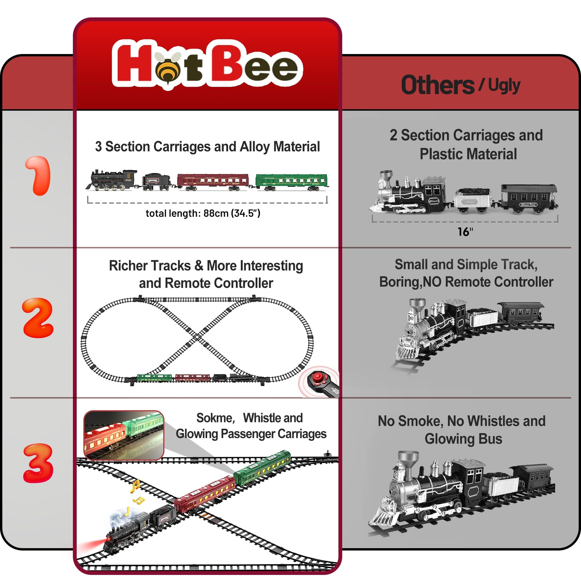 View compareHot Bee Train Set, Remote Control Train Toys With Luxury Track & Glowing Passenger Carriages, Metal Christmas Tree Train With Smoke, Light And Sound, Toy Train Set For 3 4 5 6 7+ Years Old Boys Gifts