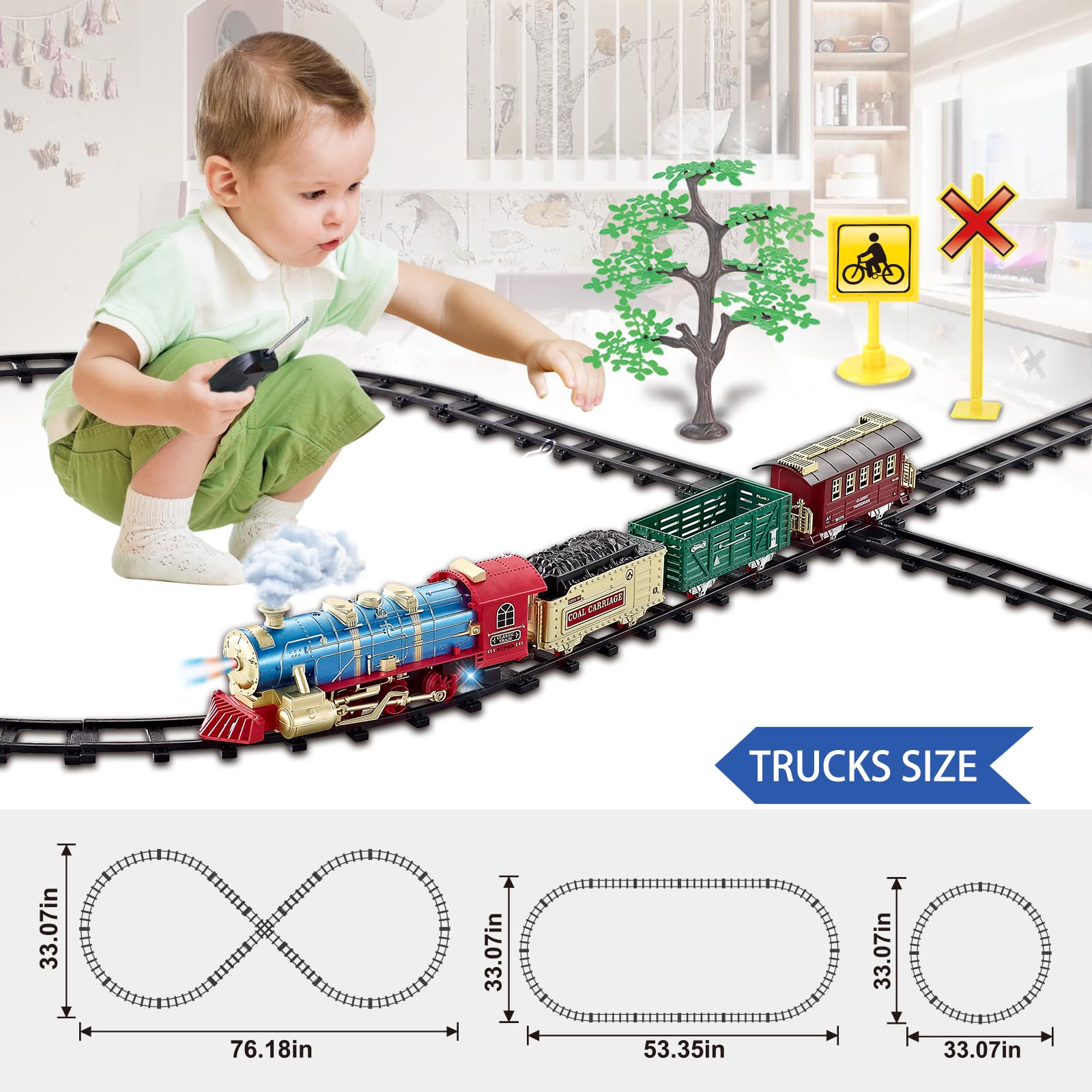 View compareJuqu Train Set For Boys -Remote Control Train Toys-Electric Train W/Smokes, Steam Locomotive W/Lights & Sound, Cargo Car And Tra