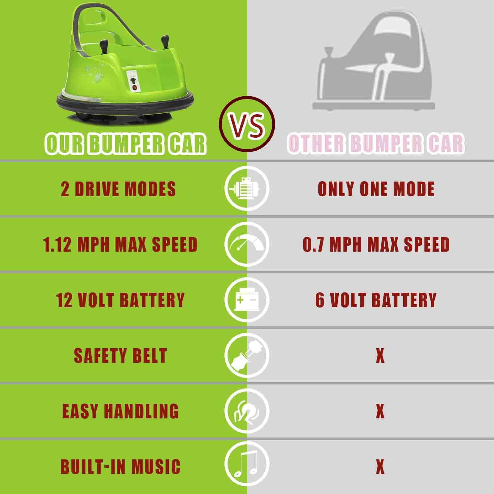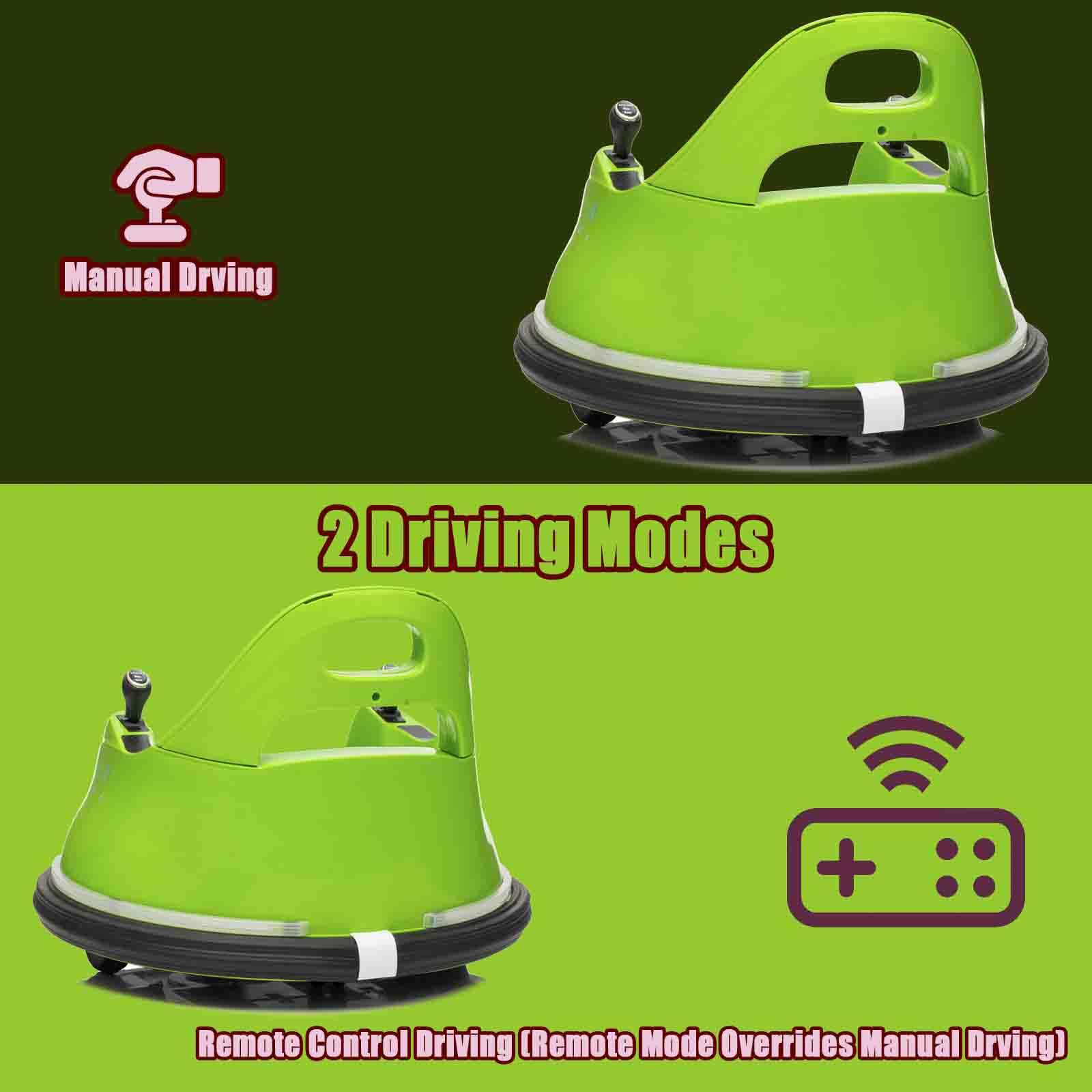 [Unique Ride on Toy Car] Our ride-on bumper car is advanced and toddler-friendly than other ride on toy car. Kids ride on bumper car is suitable for a variety of scenarios, such as wooden, floor tiles, carpets and concrete floors. Electric toy car can reach speeds of up to 1.12 mph | [360 Degree Spin] Kids can use the electric bumper car to ride, race, spin and bump all around the indoor and outdoor. Electric toy bumper car with 360 degree spin for more riding fun. The maximum weight capacity is 66 lbs | [2 Driving Mode] Our ride on bumper car for kids has manual driving mode and remote control driving mode.Parents can use remote control to control bumper cars, which can ensure your kids safe riding. And children can ride bumper cars to enjoy the interesting of independent driving | [Safety Features] Kids bumper car is equipped with seat belts and 2 control knobs which can be held by kid while playing so that safeguards the child's safety. Ride on electric vehicles bumper car also designs for anti-collision strip so that kids use the 360 degree turning radius to make maneuvering simple and avoid danger | [Built-in Music for Fun] Kids ride on electric bumper car is equipped with built-in music, which can let your children enjoy their favorite music or songs while crashing or playing. Ride on bumper car is also equipped with bright colorful LED lights, which make your kids to drive more cool and fun