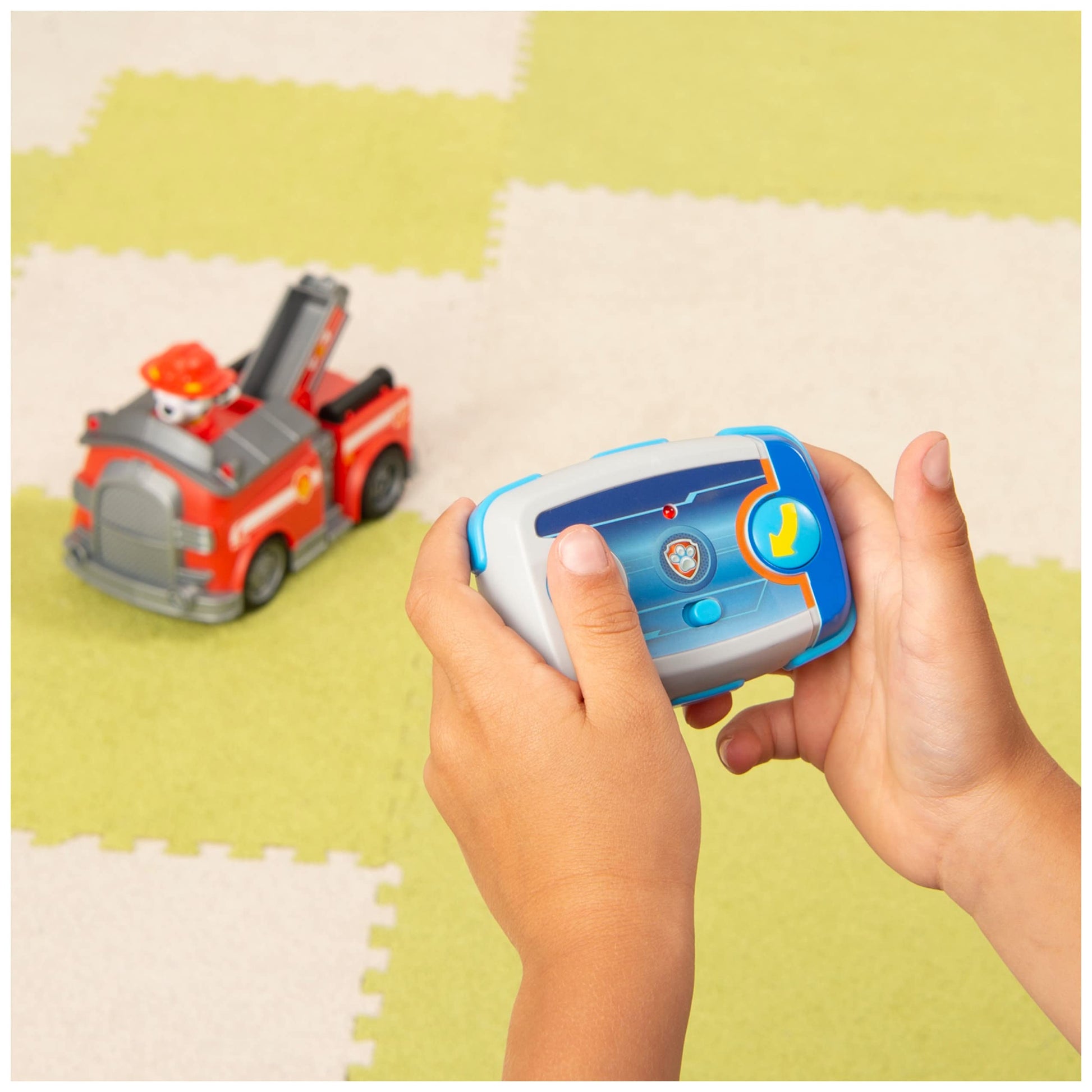 Save the day with PAW Patrols Marshall and his RC Fire Truck! Your child can drive their favorite PAW Patrol pup around and recreate their favorite moments from the hit TV show! Featuring realistic details, a ladder that moves up and down and Marshall molded in the drivers seat, this remote control car is ready for rescue missions. Marshalls RC Fire Truck includes an easy-to-use remote control with two-way steering that looks just like the Pup Pad! With two buttons, your child can easily drive Marshall forward or use the other button to reverse and turn - the simple design is perfect for first-time drivers. The Pup Pad controller has a frequency of 2.4GHz, so your child can control their RC toy car from up to 250 feet away. For more exciting PAW Patrol RC rescue missions, look for Chases Remote Control Police Cruiser (sold separately)! Save the day with Marshall and his RC Fire Truck!