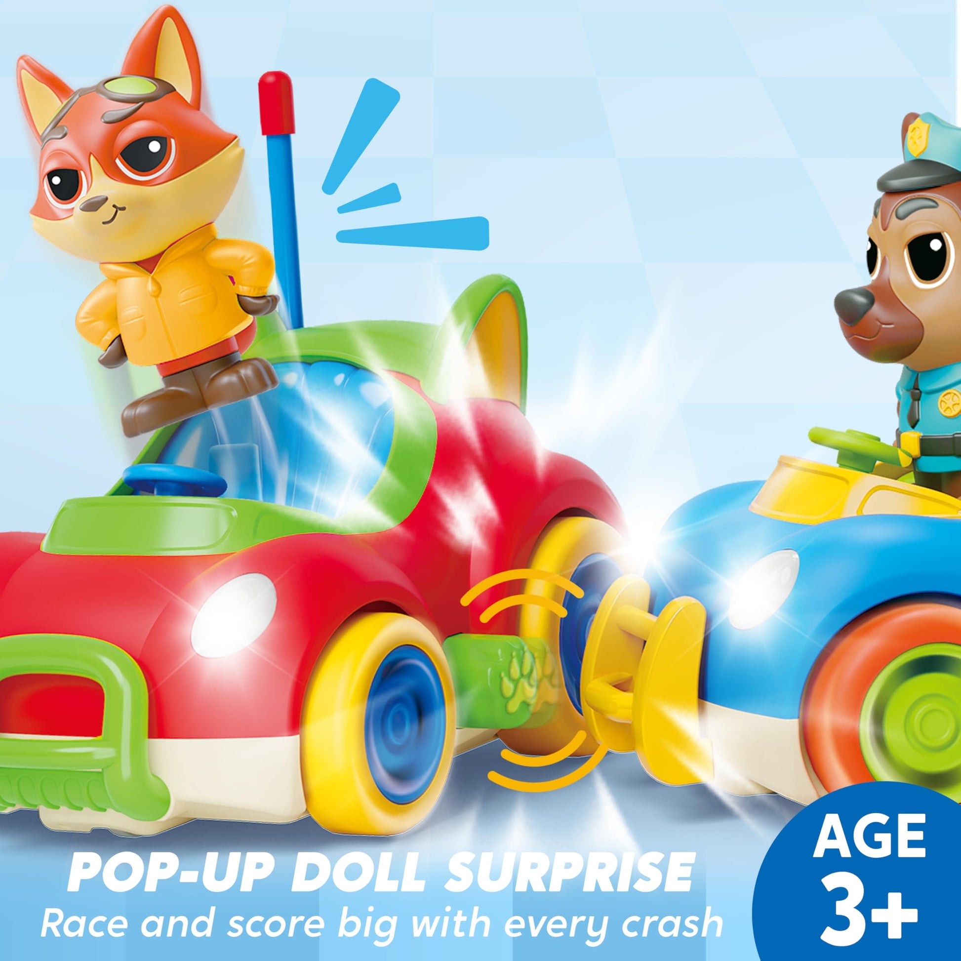 View compareRemote Control Car for Toddlers, 2 Pack RC Cars with Figure Bump & Ejection Play, Kids Cartoon Toys with LED Lights, Music, Volu