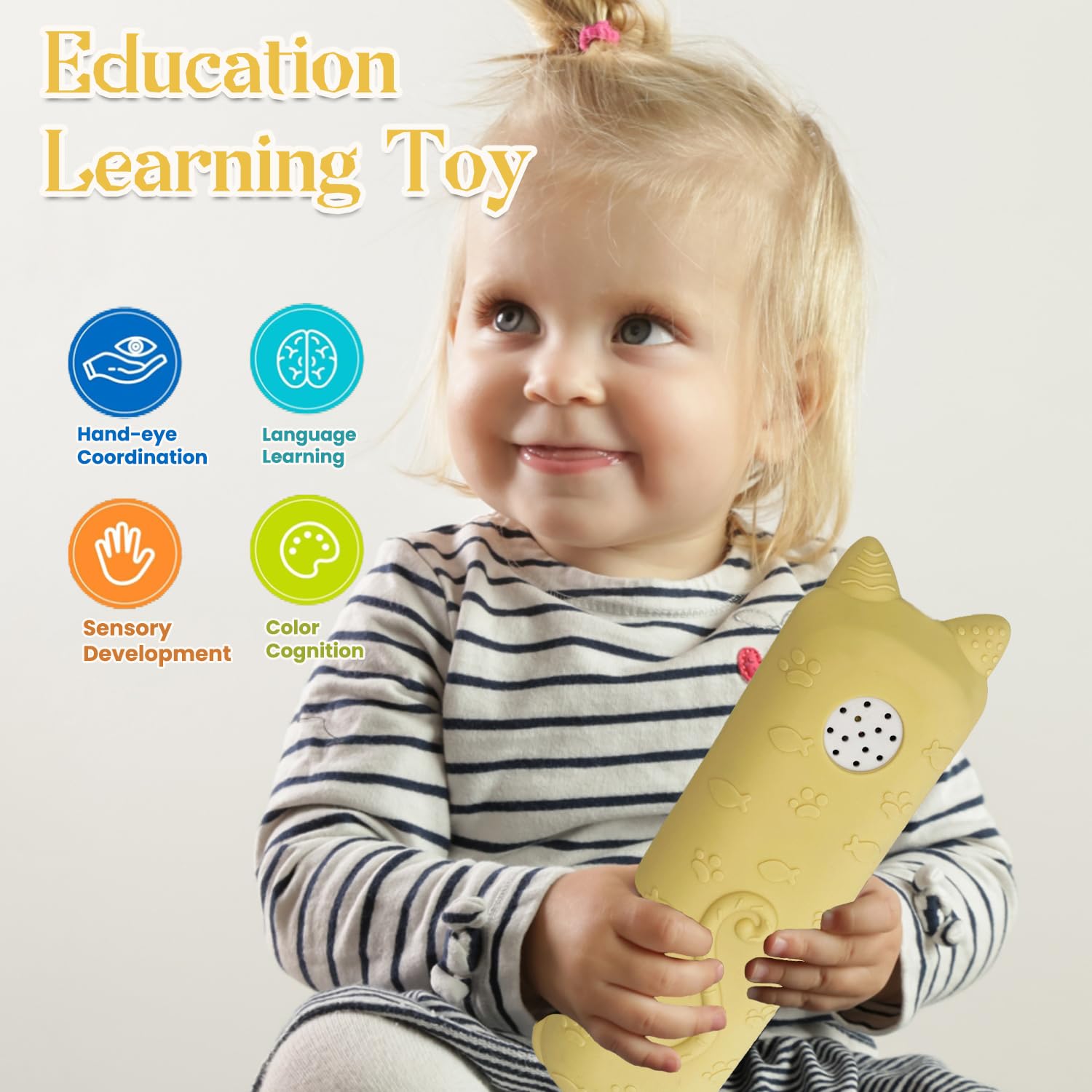 Realistic TV Remote Toys: Our simulated remote control toys with a soft silicone cover, designed especially for babies toddlers, feature volume keys, channel number keys etc, which can restore the real remote control. | Melodies and Multi-Languages: This baby musical toy features over 50 sound effects, and numbers. The baby sensory toys help strengthen essential senses like vision and hearing. With three languages (English, French, and Spanish), your baby can start early language learning through play. | Early Aducation Toy: Remote teether for baby is helpful to recognition color and learn early education and exercise. They look like real TV remotes, perfect for kids to play and imitate. | Safety First: Crafted from high-quality ABS plastic, our toy is BPA-free and fade-resistant. The surface is smooth with no sharp corners, ensuring it's gentle on your baby's skin. The soft silicone cover adds a delightful Animal design element while providing teething relief. | Perfect Gift: This baby remote toy makes an ideal gifts toys for 1 year old boys and girls, toddlers, and newborns. It keeps babies entertained for hours and promotes independent play.