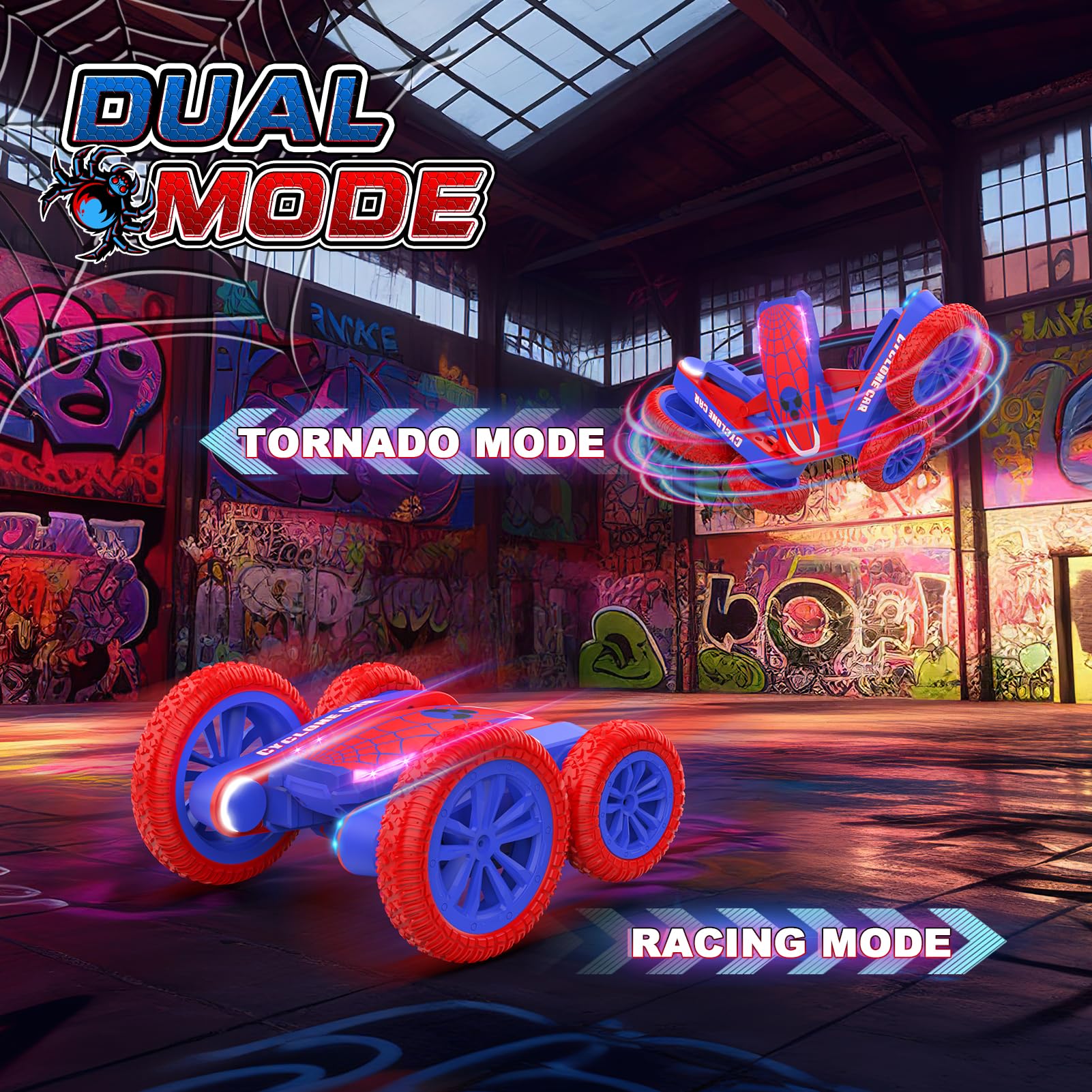 Spider Remote Control Car for Kids - 2.4Ghz Fast RC Stunt Cars, 360 Rotating 4WD RC Crawler with Lights, Rechargeable Car Toy fo