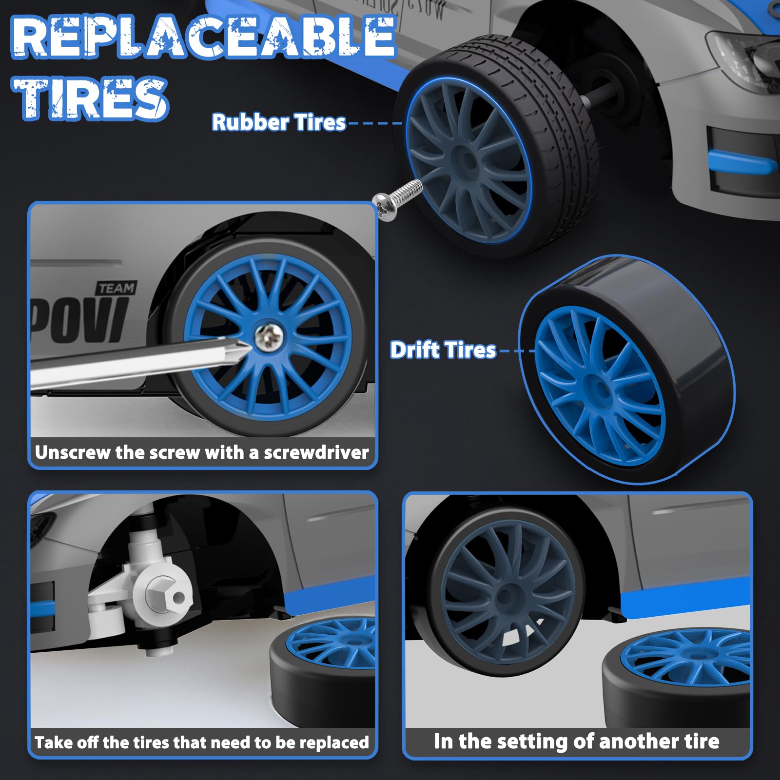 YUAN PLAN Remote Control Car, 1/24 2.4GHz 4WD RC Drift Car High Speed RC Cars with Cool Lights, Rechargeable Battery and Extra T