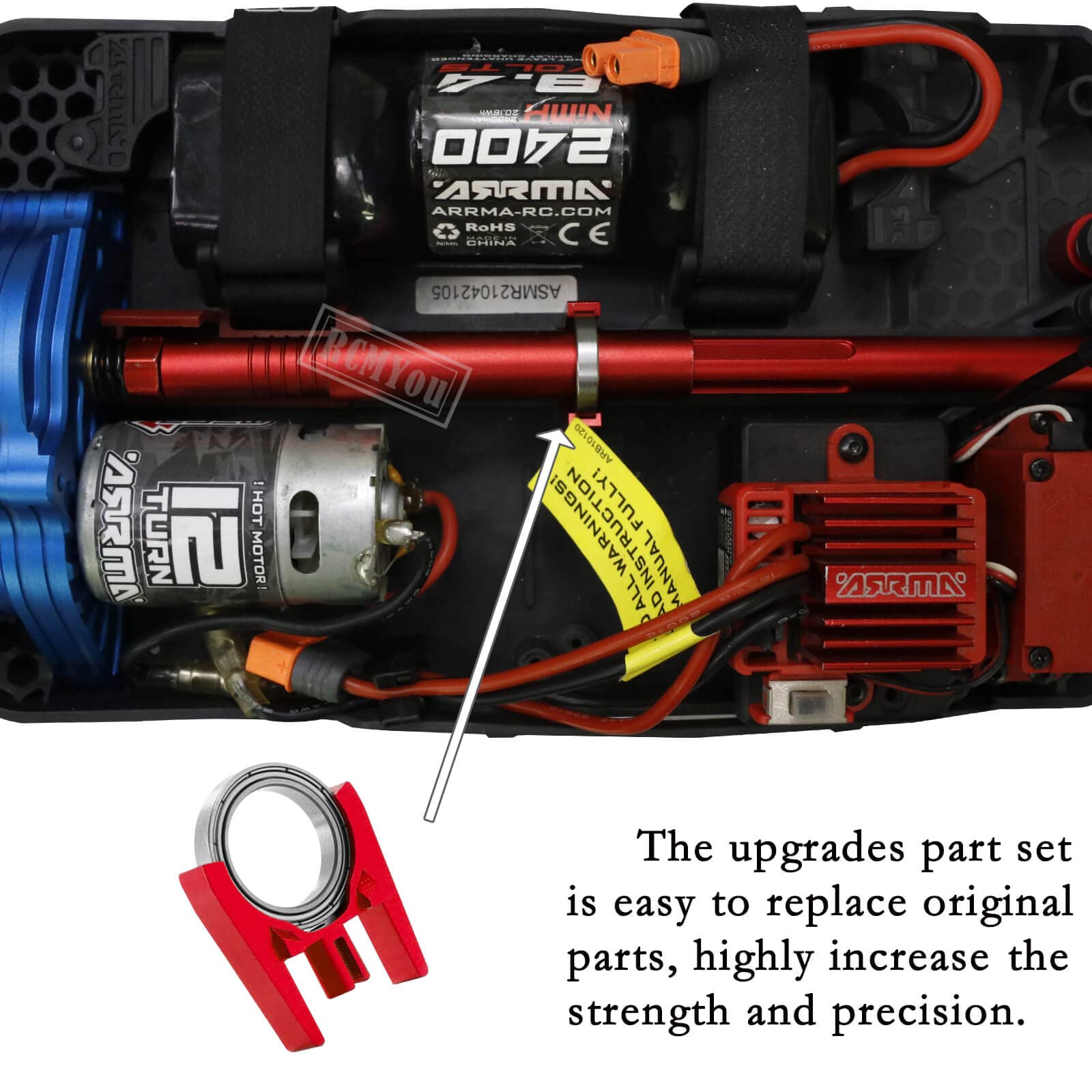 • Q: Is it easy to install the RCMYou upgrades part on my RC car? A: Yes, the upgrades part set is designed for easy replacement of original parts, allowing for a straightforward installation process to enhance the strength and precision of your RC car.