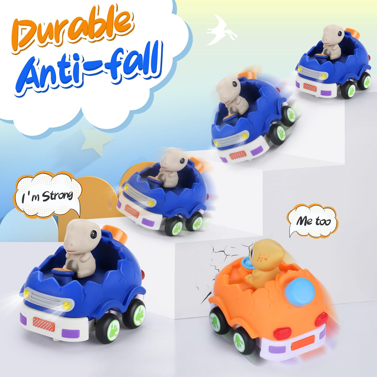 taseyok 2 Pack Remote Control Car for Toddlers, Dinosaur Toys for Kids 2-6, Toddler Sensory Toys with LED Lights and Sound, Chri