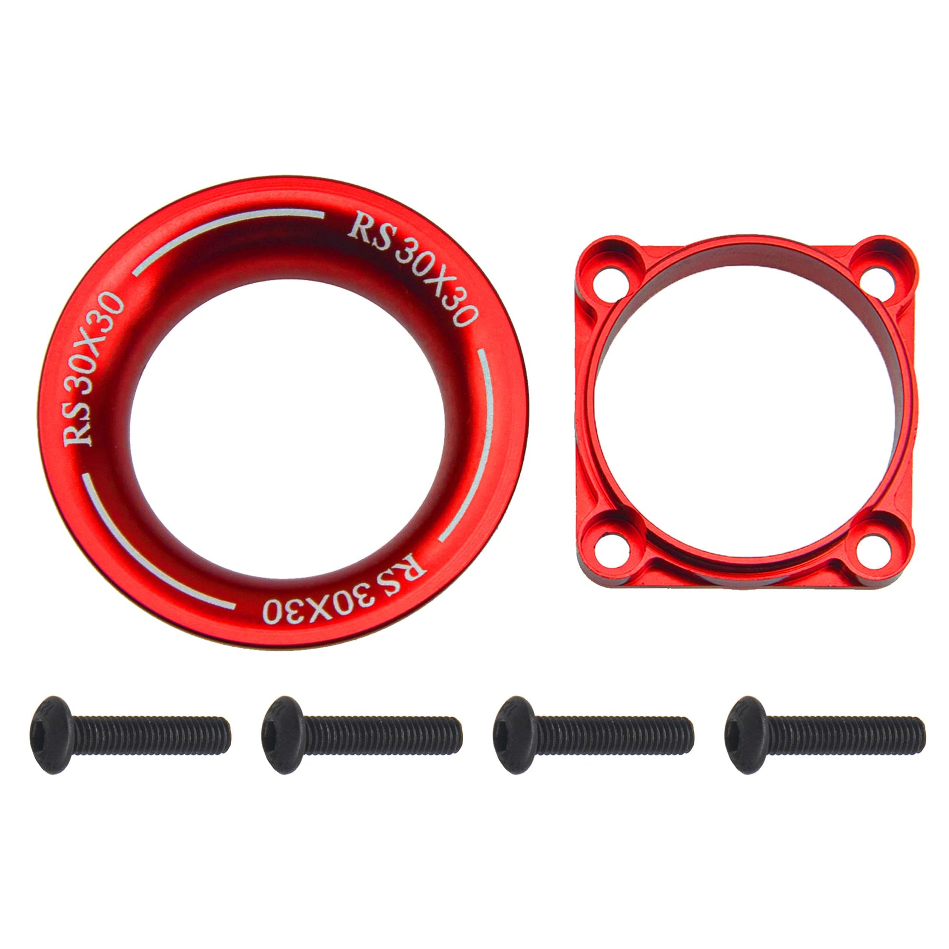 Mounting Screws Distance:24mm;For 30mm 30mm Motor ESC Cooling Fan Only,please comfirm the size info before buying. Effectively improve motor ESC cooling and better ventilation,compatible with Sakura HSP HPI Axial Traxxas 1/8 1/10 1/12 scale car. Made of aluminum alloy material,light weight and druable. Come with screws,easy to install and upgrade. Compatible with all rc cooling fan with 24mm mounting holes. Item Name:RC Cooling Fan Cover Material: Aluminum Alloy Round diameter: 43 mm; Inner diameter: 28mm; Height: 14mm Base Size:31mmx31mm Color:Black/Red (Optional) Weight:14g; Package List: 1Set RC Metal Cooling Fan Cover