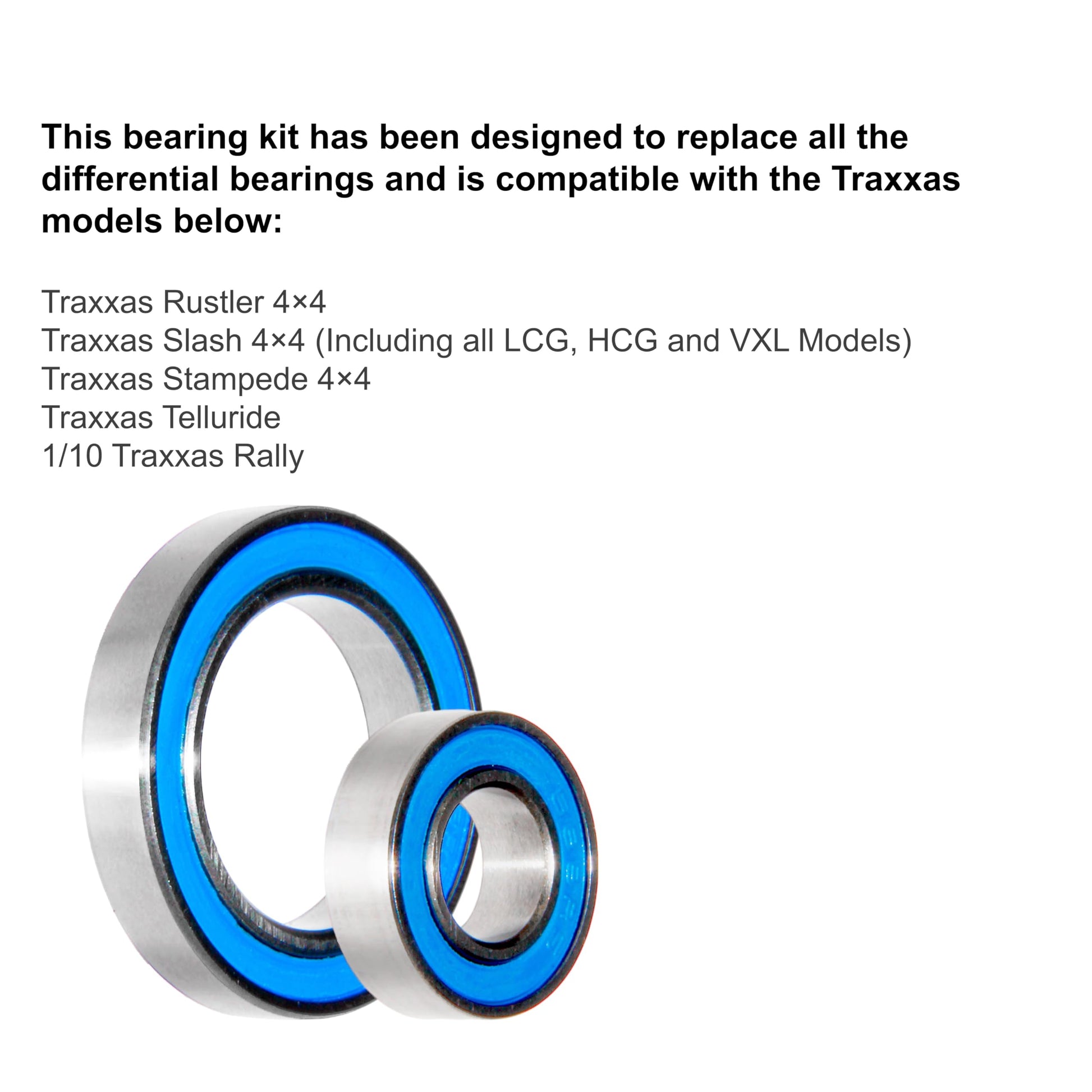 - Q: Are these bearings compatible with all Traxxas models? A: Yes, this bearing kit is designed to be compatible with various Traxxas models, including all 4x4 Rustler, Slash (including LCG, HCG, and VXL models), Stampede, Telluride, and 1/10 Rally models. Always check your specific model's requirements to ensure proper fit.