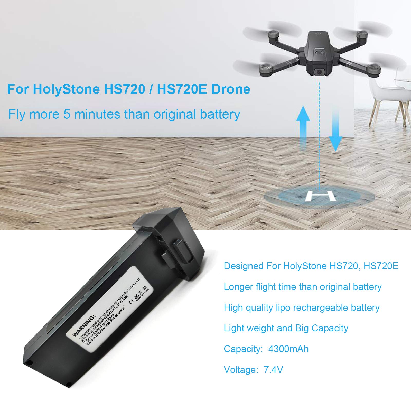 4300mAh 7.4V Replacement Lipo Battery for HolyStone HS720 HS720E Drone