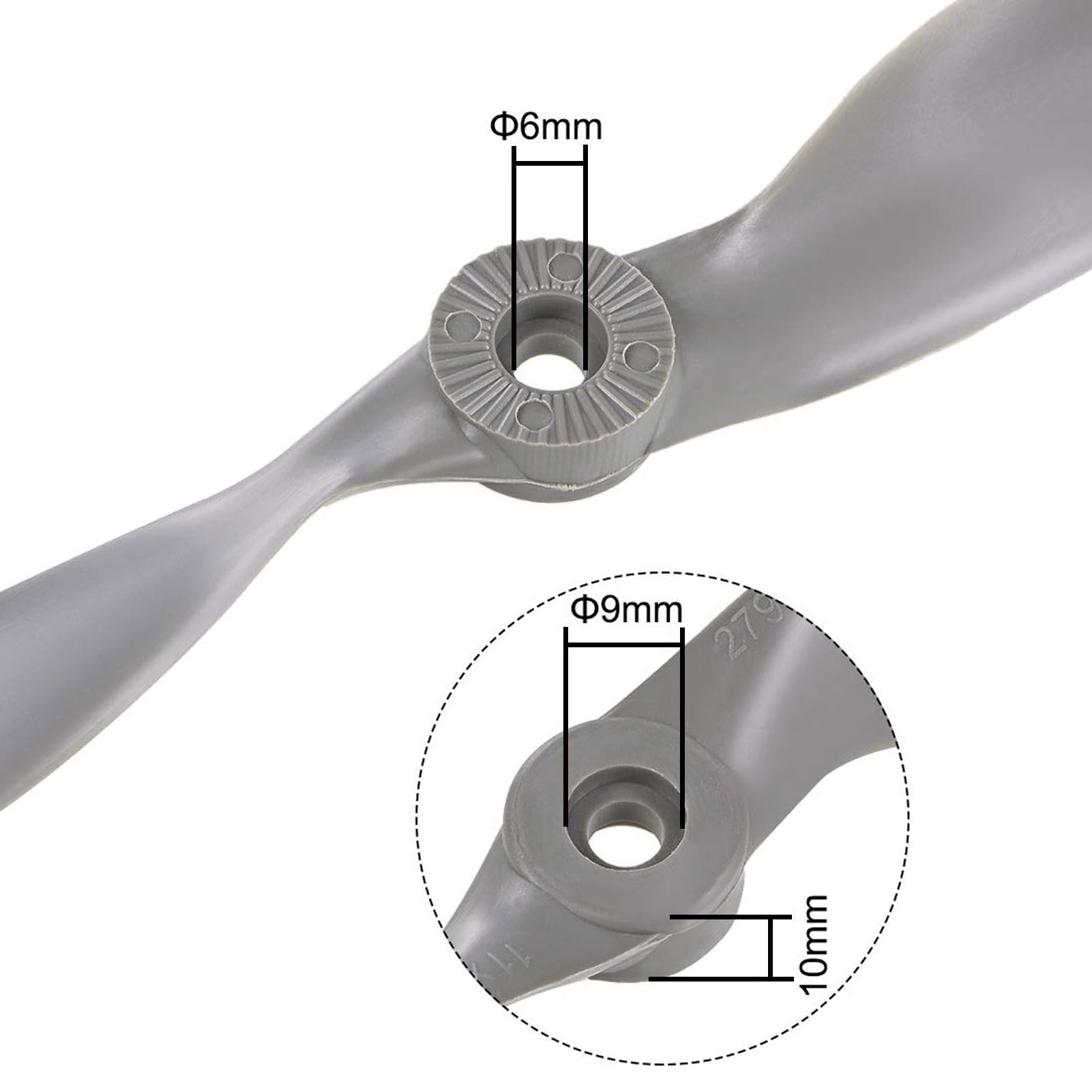TOP-VIGOR 2pcs CW RC Propellers 1170 11 x 7 Inch 2-Vane RC Vehicle Propellers Replacement for RC Airplane with Adapter Rings Nylon Gray