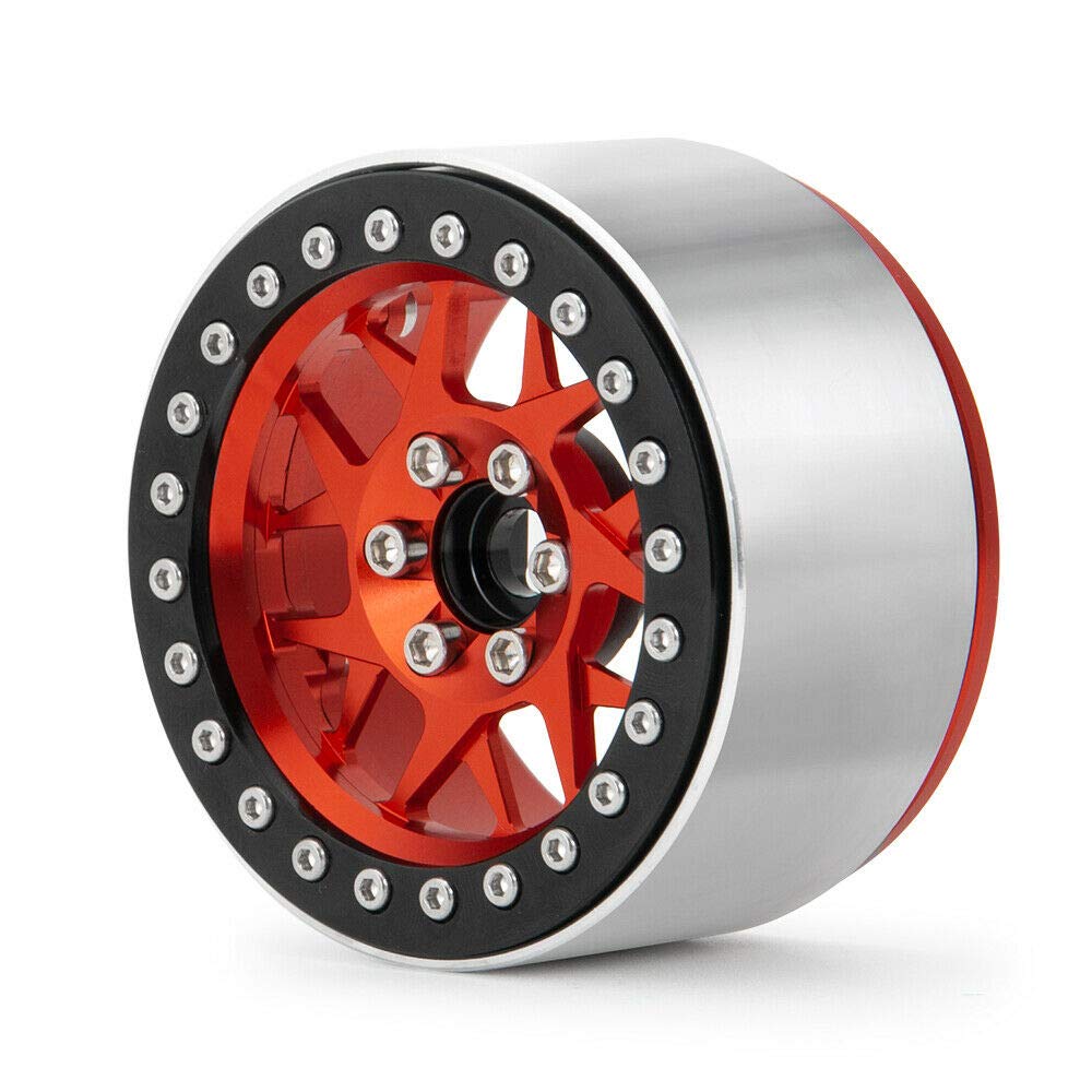 4Pcs 2.2'' Rc Aluminum Beadlock Wheels W/Hubs For For For 1/10 Rc Axial Wraith Rr10 Yeti Scx10 D90 Trx4 Cc01 (Red)