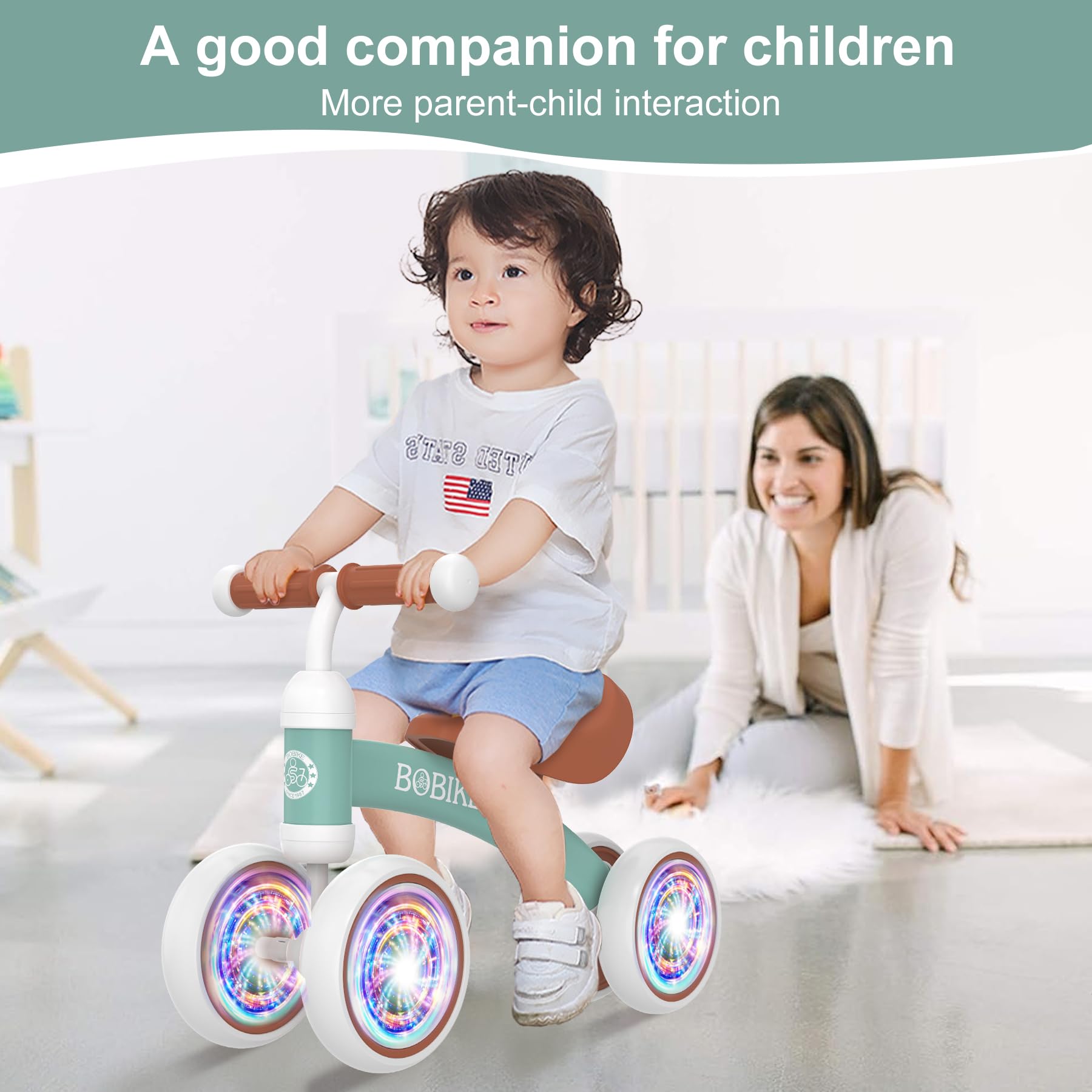 Baby Balance Bike Toys For 12-36 Months Kids Toy Boy And Girls Gifts Toddler Best First Birthday Gift Children Walker No Pedal Infant 4 Wheels Bicycle (Colorful, Green-Light)