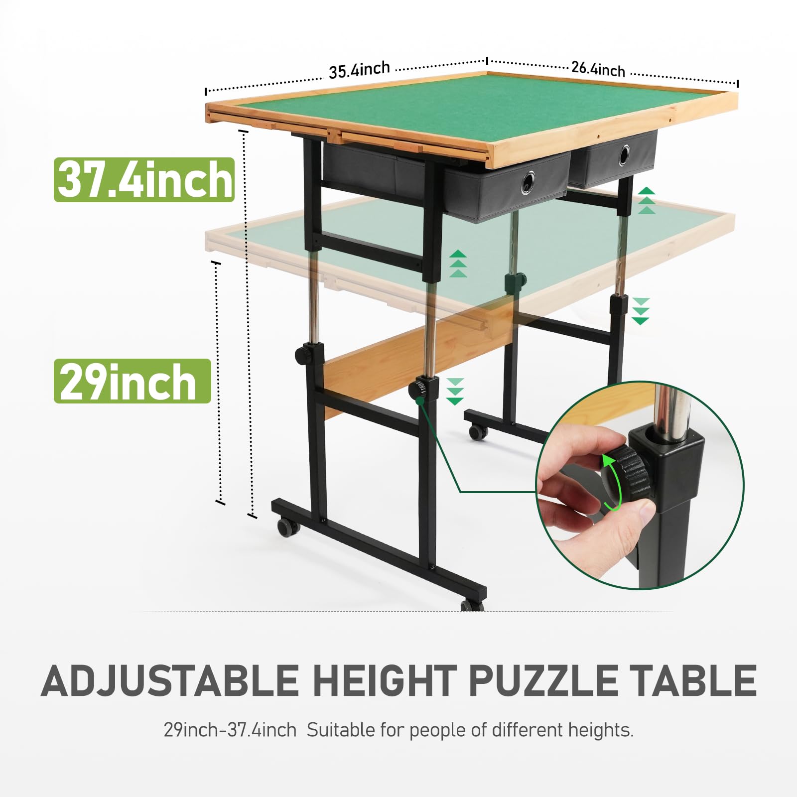 - Q: Can the height of the puzzle table be adjusted? A: Yes, the BuilderButler puzzle table features adjustable height options, ranging from 29 inches to 37.4 inches, allowing users to customize it for optimal ergonomic comfort.