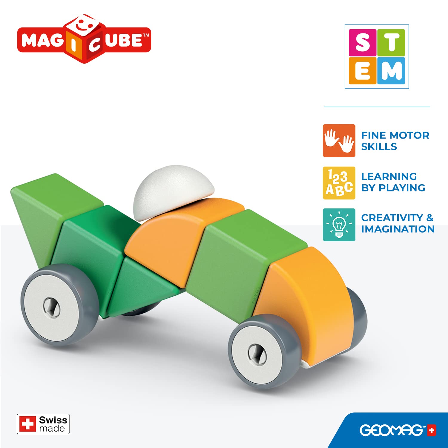 View compareGeomag Swiss-Made Magicube 13-Piece Magnetic Shapes & Wheels Building Set, Cars & Characters, Stacking Blocks For Toddlers & Kid