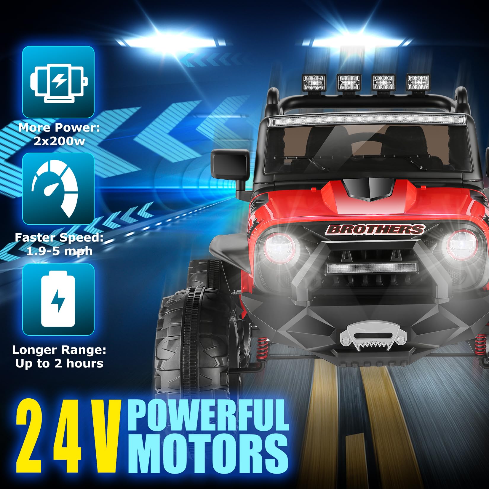 Hikole 24V 2-Seater Ride-On Car For Big Kids Experience The Thrill Of Authentic Driving With Hikole 24 Volt Ride-On Toy, Designed For Big Kids Seeking Adventure And Fun. Powered By A 24V Battery With 200W*2 Dual Drive Motors, This Dual-Seater Vehicle Offers Three Speed Settings (2.0, 2.7, And 4.3 Mph), Providing Customizable Excitement For Ages 3 And Up. The Spacious 20-Inch Dual Seat Accommodates Siblings Or Friends, Seat Belts, Anti-Slip Seating, And A Parental Remote Control (With A 98Ft Range) Ensure Safety And Peace Of Mind. Equipped With 4-Wheeler Suspension And A Rear Shock Function, It Delivers A Smooth Ride On Flat Surfaces, Complete With Led Lights For An Immersive Experience. Kids Can Groove To Their Favorite Tunes Via Bluetooth Connectivity, A Built-In Radio, Or Preloaded Music, Making Every Drive Entertaining. With A Battery Life Of 50 Minutes To 2 Hours (Depending On Usage), This Ride-On Car Encourages Outdoor Exploration And Parent-Child Bonding. Key Features: Dual-Seat Capacity For Shared Fun 24V Power With 3-Speed Options Parental Remote Control & Safety Features (Seat Belts, Soft Start) Bluetooth/Radio Entertainment System 4-Wheeler Suspension For Smooth Rides Ideal For Ages 3+; Promotes Skill Development Package Includes: Ride-On Car, Charger, And Remote Control Dimensions: 48 X 35 X 31.5 Inches | Weight: 48.5 Lbs
